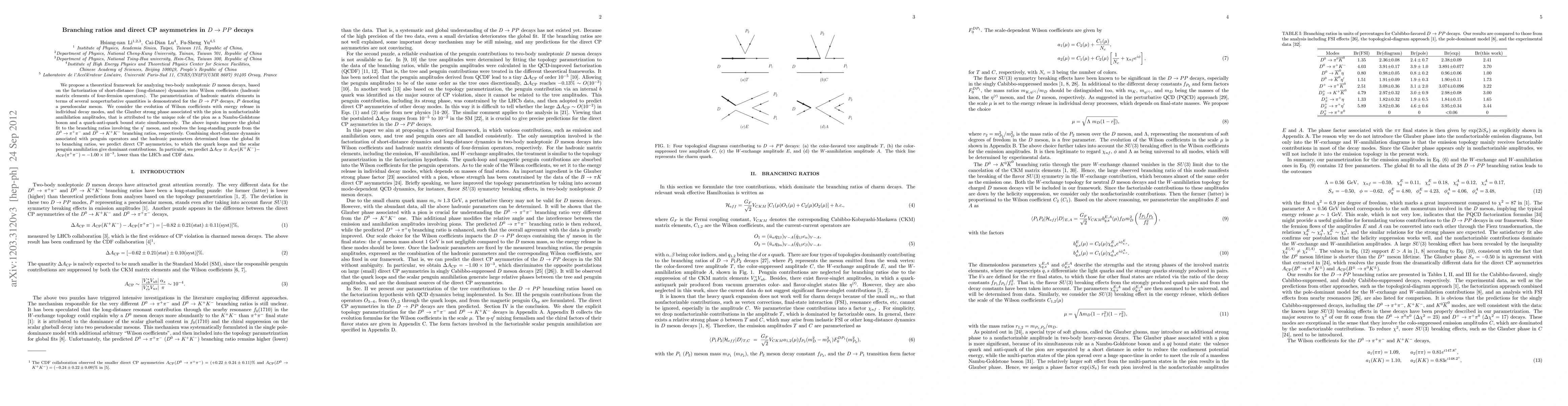 We propose a theoretical framework for analyzing two-body nonleptonic $D$ meson decays, based on the factorization of short-distance (long-distance) dynamics into Wilson coefficients (hadronic matrix elements of four-fermion operators). The parametrization of hadronic matrix elements in terms of several nonperturbative quantities is demonstrated for the $D\to PP$ decays, $P$ denoting a pseudoscalar meson. We consider the evolution of Wilson coefficients with energy release in individual decay modes, and the Glauber strong phase associated with the pion in nonfactorizable annihilation amplitudes, that is attributed to the unique role of the pion as a Nambu-Goldstone boson and a quark-anti-quark bound state simultaneously. The above inputs improve the global fit to the branching ratios involving the $\eta'$ meson, and resolves the long-standing puzzle from the $D^0\to\pi^+\pi^-$ and $D^0\to K^+K^-$ branching ratios, respectively. Combining short-distance dynamics associated with penguin operators and the hadronic parameters determined from the global fit to branching ratios, we predict direct CP asymmetries, to which the quark loops and the scalar penguin annihilation give dominant contributions. In particular, we predict $\Delta A_{\rm CP}\equiv A_{\rm CP}(K^+K^-)-A_{\rm CP}(\pi^+\pi^-)=-1.00\times 10^{-3}$, lower than the LHCb and CDF data.