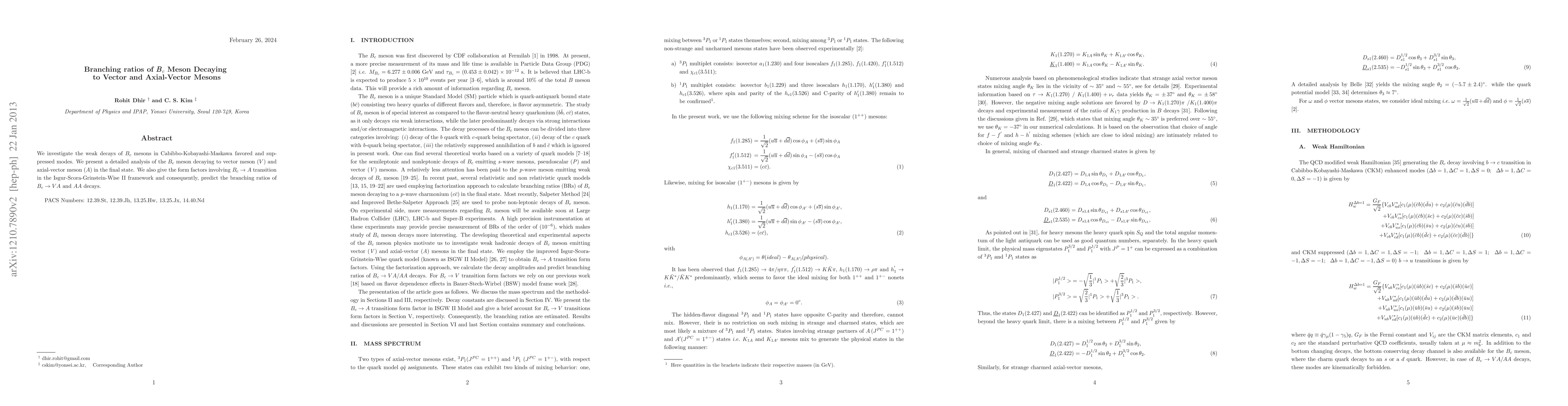 This paper analyzes the weak decay processes of $B_c$ mesons into vector and axial-vector mesons, providing detailed predictions for the branching ratios of $B_c \to VA$ and $AA$ decays using the Isgur-Scora-Grinstein-Wise II framework. It also examines both favored and suppressed decay modes.