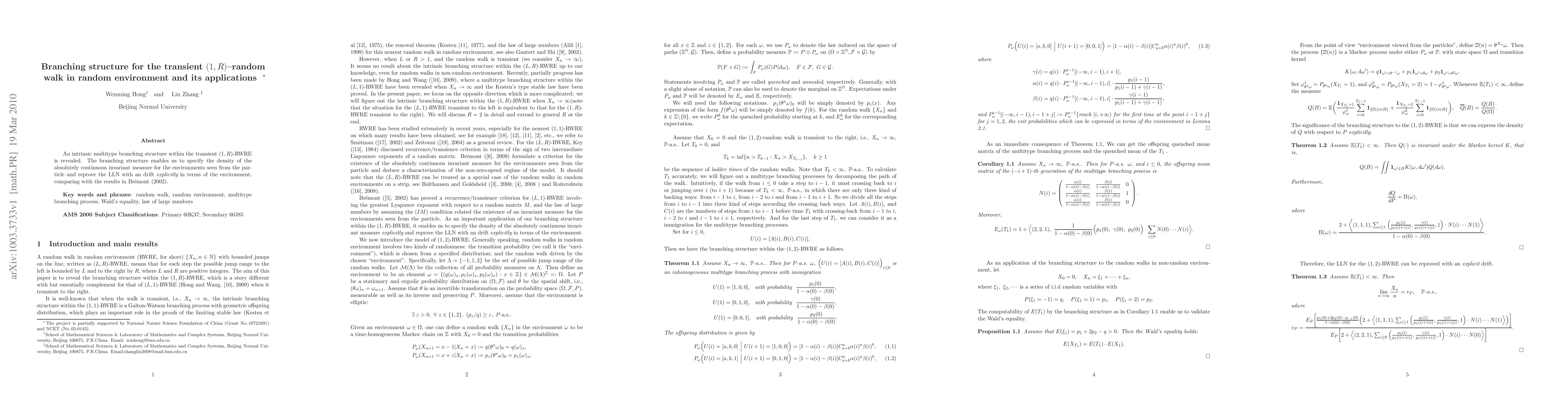 Researchers discover a branching structure in transient random walks with random environments, enabling them to calculate density of invariant measures and reprove the Law of Large Numbers (LLN) for environments with drift.