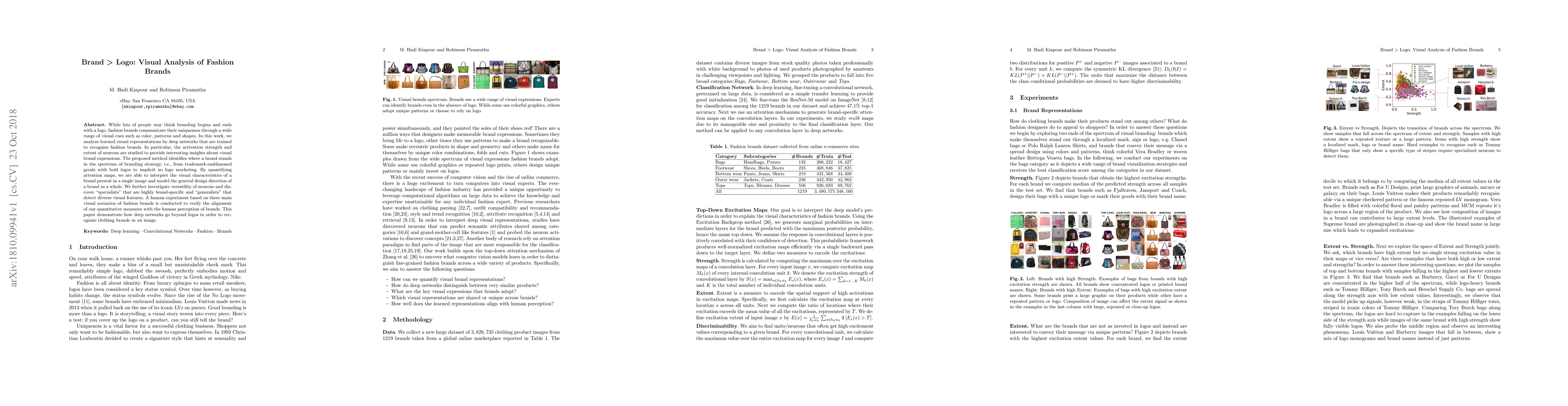While lots of people may think branding begins and ends with a logo, fashion brands communicate their uniqueness through a wide range of visual cues such as color, patterns and shapes. In this work, we analyze learned visual representations by deep networks that are trained to recognize fashion brands. In particular, the activation strength and extent of neurons are studied to provide interesting insights about visual brand expressions. The proposed method identifies where a brand stands in the spectrum of branding strategy, i.e., from trademark-emblazoned goods with bold logos to implicit no logo marketing. By quantifying attention maps, we are able to interpret the visual characteristics of a brand present in a single image and model the general design direction of a brand as a whole. We further investigate versatility of neurons and discover "specialists" that are highly brand-specific and "generalists" that detect diverse visual features. A human experiment based on three main visual scenarios of fashion brands is conducted to verify the alignment of our quantitative measures with the human perception of brands. This paper demonstrate how deep networks go beyond logos in order to recognize clothing brands in an image.