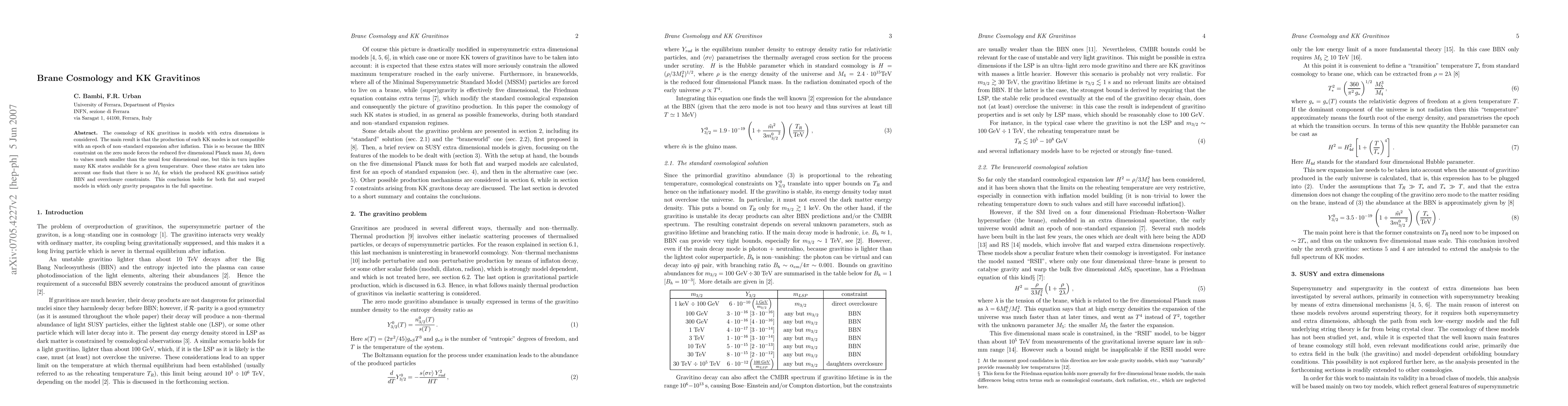 The cosmology of KK gravitinos in models with extra dimensions is considered. The main result is that the production of such KK modes is not compatible with an epoch of non--standard expansion after inflation. This is so because the BBN constraint on the zero mode forces the reduced five dimensional Planck mass $M_5$ down to values much smaller than the usual four dimensional one, but this in turn implies many KK states available for a given temperature. Once these states are taken into account one finds that there is no $M_5$ for which the produced KK gravitinos satisfy BBN and overclosure constraints. This conclusion holds for both flat and warped models in which only gravity propagates in the full spacetime.