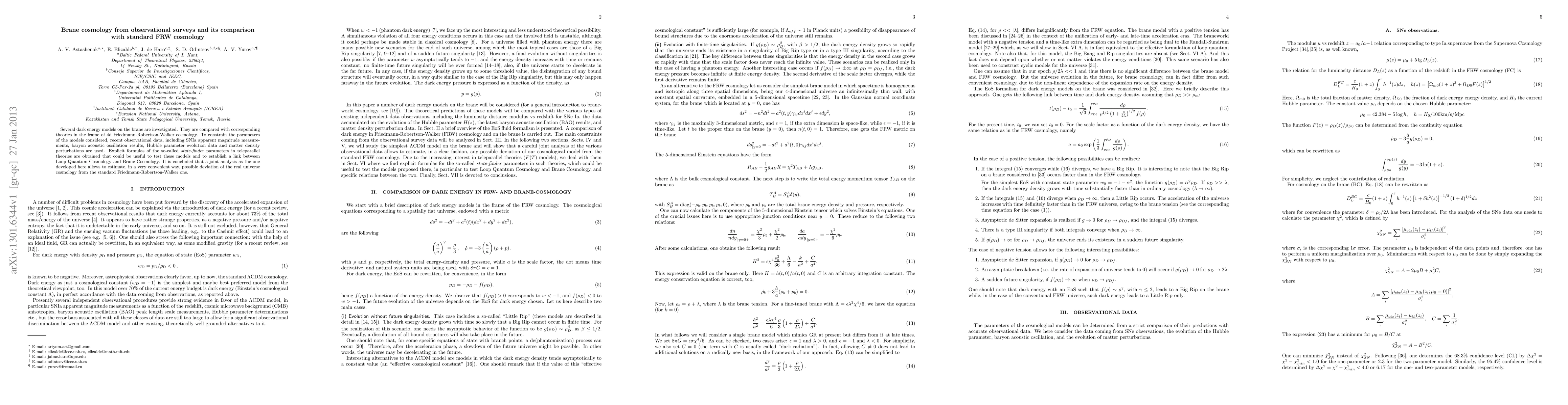 Several dark energy models on the brane are investigated. They are compared with corresponding theories in the frame of 4d Friedmann-Robertson-Walker cosmology. To constrain the parameters of the models considered, recent observational data, including SNIa apparent magnitude measurements, baryon acoustic oscillation results, Hubble parameter evolution data and matter density perturbations are used. Explicit formulas of the so-called {\it state-finder} parameters in teleparallel theories are obtained that could be useful to test these models and to establish a link between Loop Quantum Cosmology and Brane Cosmology. It is concluded that a joint analysis as the one developed here allows to estimate, in a very convenient way, possible deviation of the real universe cosmology from the standard Friedmann-Robertson-Walker one.