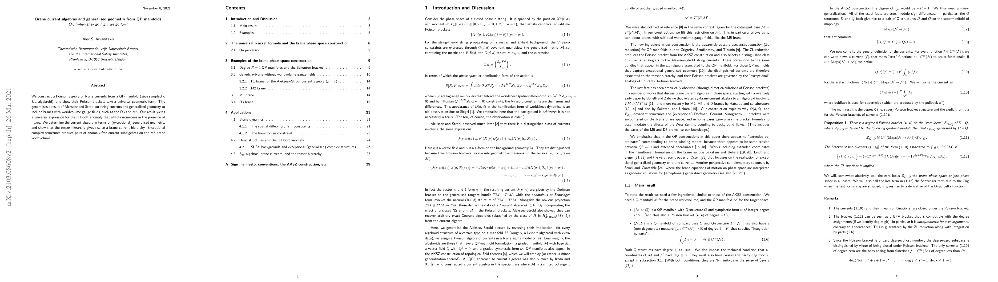 This paper constructs a Poisson algebra of brane currents from QP-manifolds, generalizing string current results to include branes with gauge fields. It reveals a universal geometric form for these brackets and provides a universal expression for the 't Hooft anomaly, linking current algebras to exceptional generalised geometry.