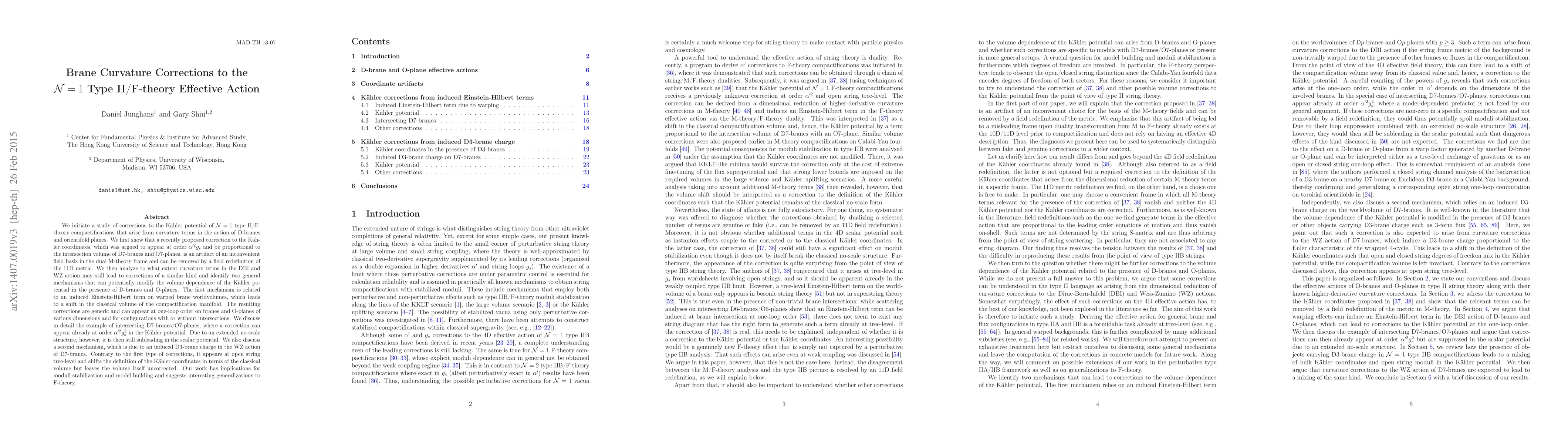 We initiate a study of corrections to the K\"ahler potential of $\mathcal{N}=1$ type II/F-theory compactifications that arise from curvature terms in the action of D-branes and orientifold planes. We first show that a recently proposed correction to the K\"ahler coordinates, which was argued to appear at order $\alpha^{\prime 2}g_s$ and be proportional to the intersection volume of D7-branes and O7-planes, is an artifact of an inconvenient field basis in the dual M-theory frame and can be removed by a field redefinition of the 11D metric. We then analyze to what extent curvature terms in the DBI and WZ action may still lead to corrections of a similar kind and identify two general mechanisms that can potentially modify the volume dependence of the K\"ahler potential in the presence of D-branes and O-planes. The first mechanism is related to an induced Einstein-Hilbert term on warped brane worldvolumes, which leads to a shift in the classical volume of the compactification manifold. The resulting corrections are generic and can appear at one-loop order on branes and O-planes of various dimensions and for configurations with or without intersections. We discuss in detail the example of intersecting D7-branes/O7-planes, where a correction can appear already at order $\alpha^{\prime 2}g_s^2$ in the K\"ahler potential. Due to an extended no-scale structure, however, it is then still subleading in the scalar potential. We also discuss a second mechanism, which is due to an induced D3-brane charge in the WZ action of D7-branes. Contrary to the first type of corrections, it appears at open string tree-level and shifts the definition of the K\"ahler coordinates in terms of the classical volume but leaves the volume itself uncorrected. Our work has implications for moduli stabilization and model building and suggests interesting generalizations to F-theory.