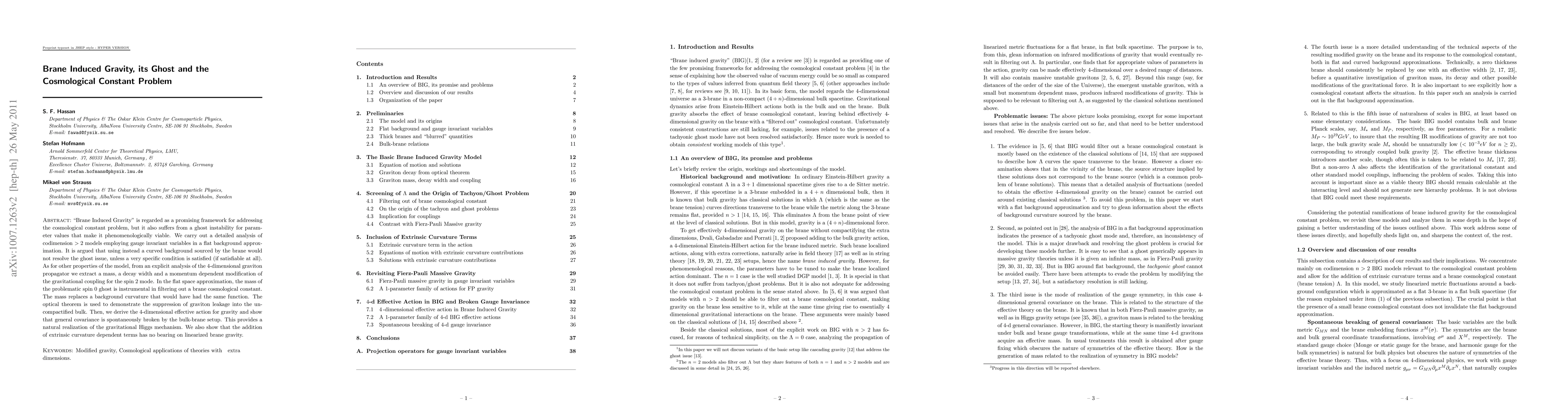 Researchers investigated Brane Induced Gravity to address the cosmological constant problem, but found that using a curved background wouldn't resolve the ghost instability issue; instead, they proposed a flat background solution that relies on the mass of the problematic spin 0 ghost.