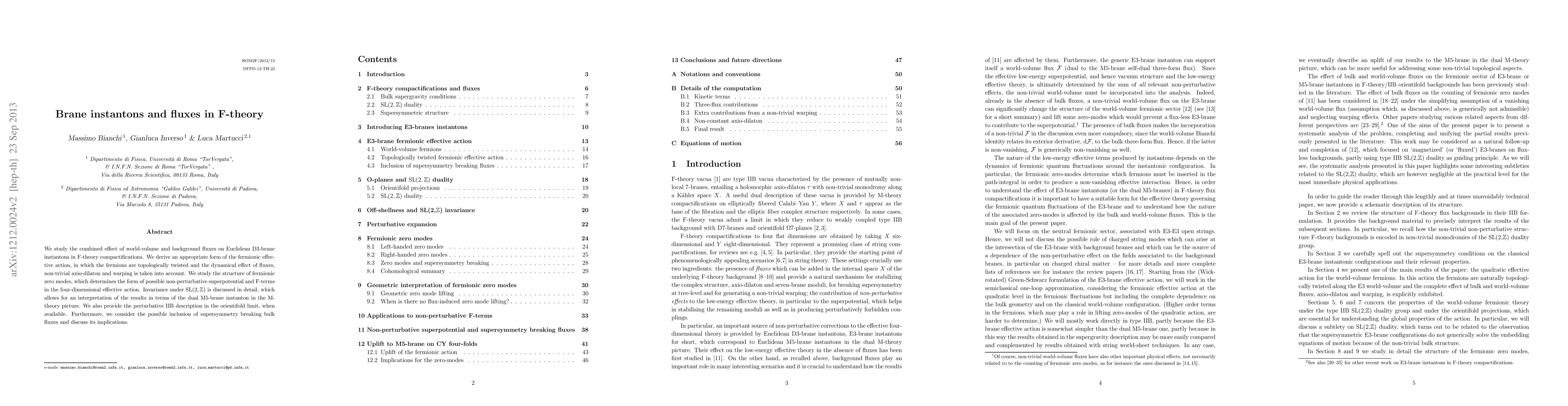 We study the combined effect of world-volume and background fluxes on Euclidean D3-brane instantons in F-theory compactifications. We derive an appropriate form of the fermionic effective action, in which the fermions are topologically twisted and the dynamical effect of fluxes, non-trivial axio-dilaton and warping is taken into account. We study the structure of fermionic zero modes, which determines the form of possible non-perturbative superpotential and F-terms in the four-dimensional effective action. Invariance under SL(2,Z) is discussed in detail, which allows for an interpretation of the results in terms of the dual M5-brane instanton in the M-theory picture. We also provide the perturbative IIB description in the orientifold limit, when available. Furthermore, we consider the possible inclusion of supersymmetry breaking bulk fluxes and discuss its implications.