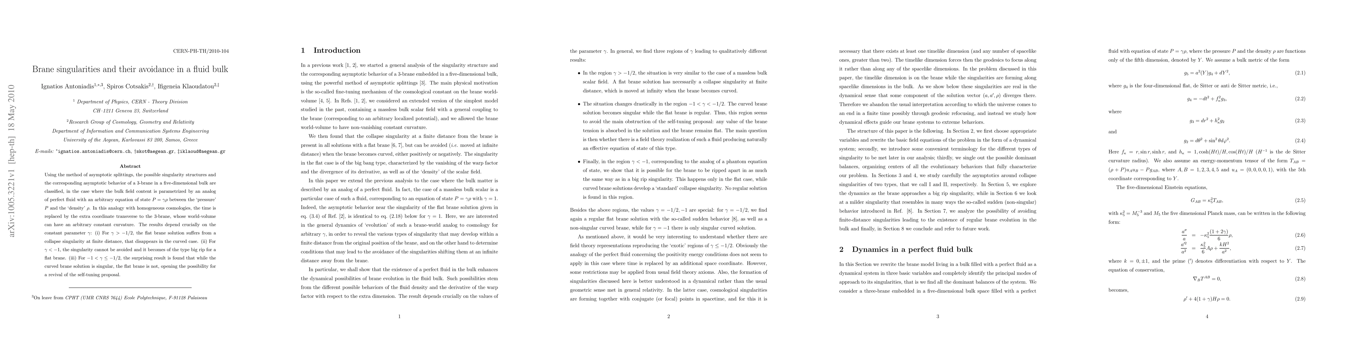 Using the method of asymptotic splittings, the possible singularity structures and the corresponding asymptotic behavior of a 3-brane in a five-dimensional bulk are classified, in the case where the bulk field content is parametrized by an analog of perfect fluid with an arbitrary equation of state $P=\gamma\rho$ between the `pressure' $P$ and the `density' $\rho$. In this analogy with homogeneous cosmologies, the time is replaced by the extra coordinate transverse to the 3-brane, whose world-volume can have an arbitrary constant curvature. The results depend crucially on the constant parameter $\gamma$: (i) For $\gamma>-1/2$, the flat brane solution suffers from a collapse singularity at finite distance, that disappears in the curved case. (ii) For $\gamma<-1$, the singularity cannot be avoided and it becomes of the type big rip for a flat brane. (iii) For $-1<\gamma\le -1/2$, the surprising result is found that while the curved brane solution is singular, the flat brane is not, opening the possibility for a revival of the self-tuning proposal.
