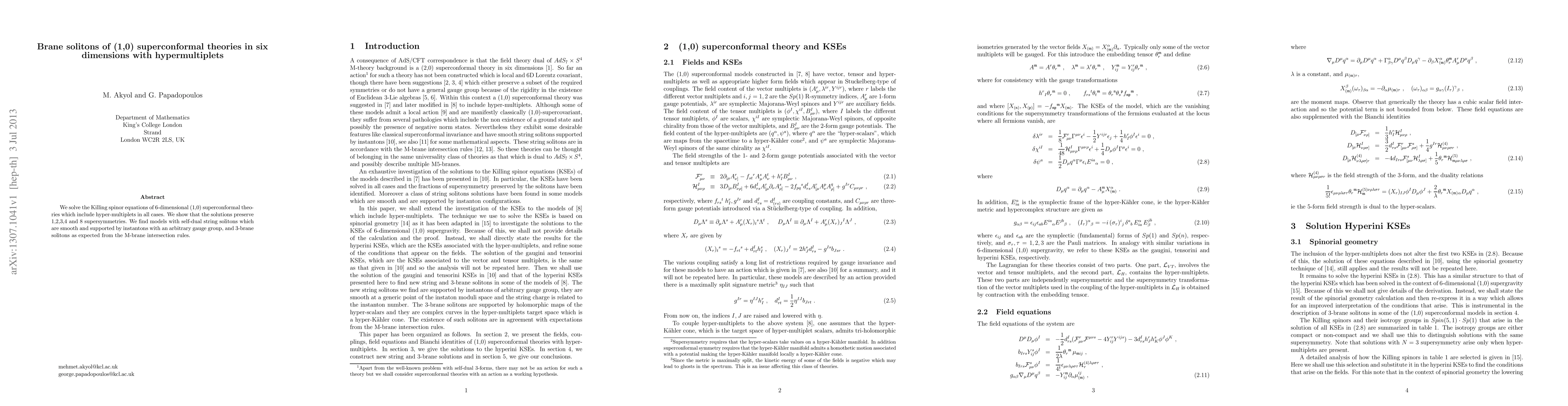 Research finds solutions to 6-dimensional superconformal theories with hypermultiplets that preserve various supersymmetries and include self-dual string solitons and 3-brane solitons.