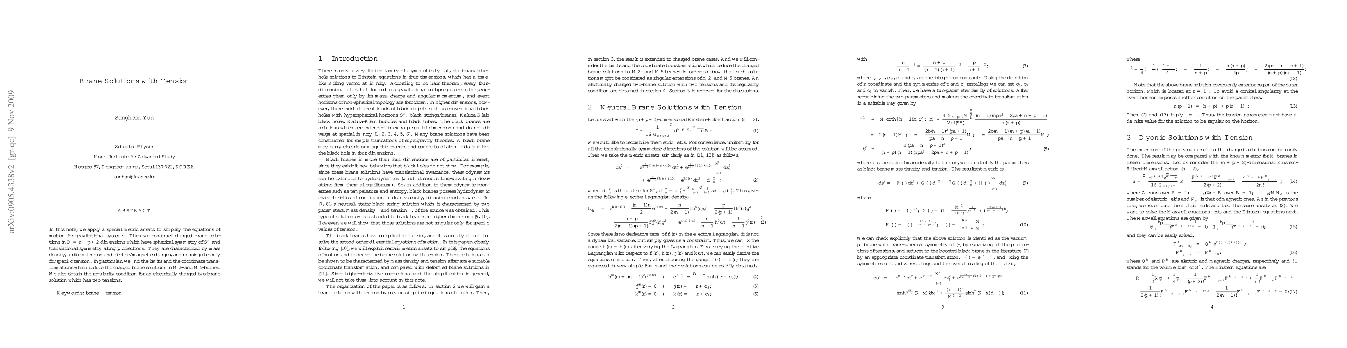 In this note, we apply a special metric ansatz to simplify the equations of motion for gravitational systems. Then we construct charged brane solutions in $D=n+p+2$ dimensions which have spherical symmetry of $S^n$ and translational symmetry along $p$ directions. They are characterized by mass density, uniform tension and electric/magnetic charges, and nonsingular only for specific tension. In particular, we find the limits and the coordinate transformations which reduce the charged brane solutions to $M2$- and $M5$-branes. We also obtain the regularity condition for an electrically charged two-brane solution which has two tensions.