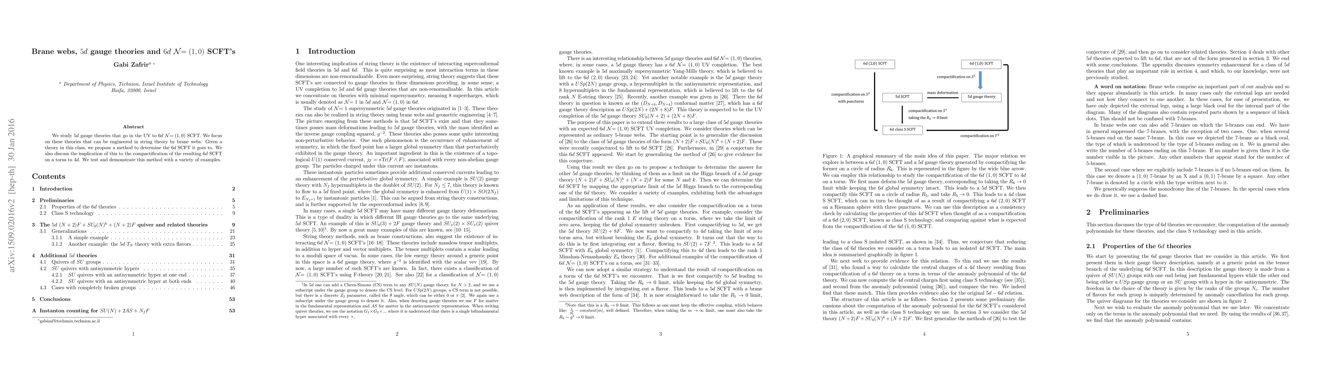 This paper investigates $5d$ gauge theories linked to $6d$ $\mathcal{N}=(1,0)$ SCFTs, proposing a method to identify the corresponding $6d$ SCFT using string theory brane webs. It also explores the implications of compactifying these $6d$ SCFTs on a torus to obtain $4d$ theories, validated through several examples.