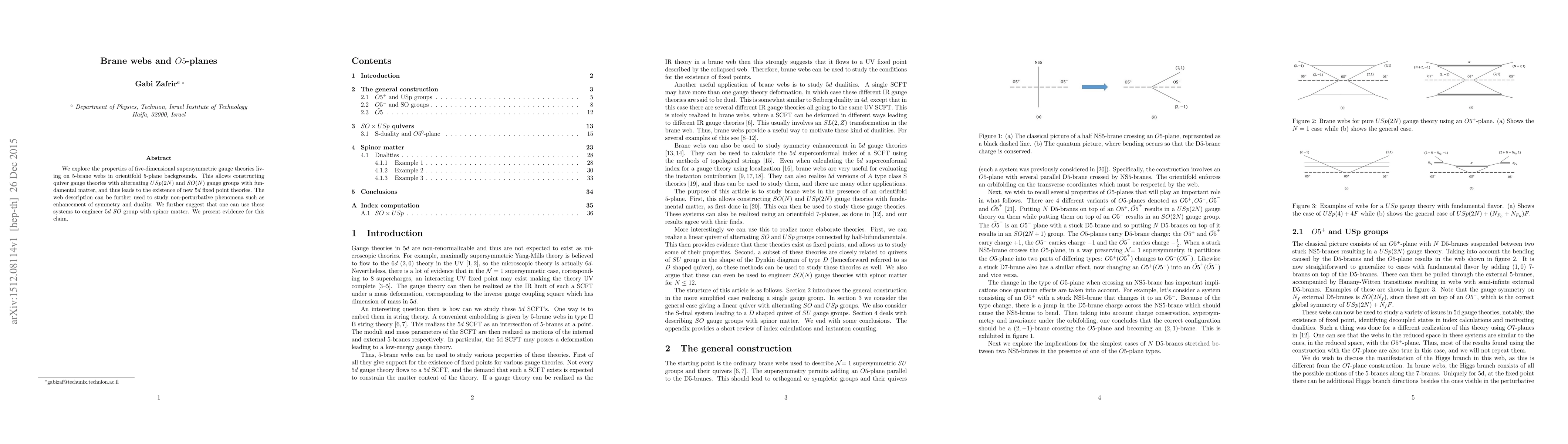 This paper investigates five-dimensional supersymmetric gauge theories on brane webs in orientifold $5$-plane backgrounds, constructing new $5d$ fixed point theories and exploring symmetry enhancement and duality. It also proposes using these systems to engineer $5d$ $SO$ group theories with spinor matter, providing evidence for its feasibility.