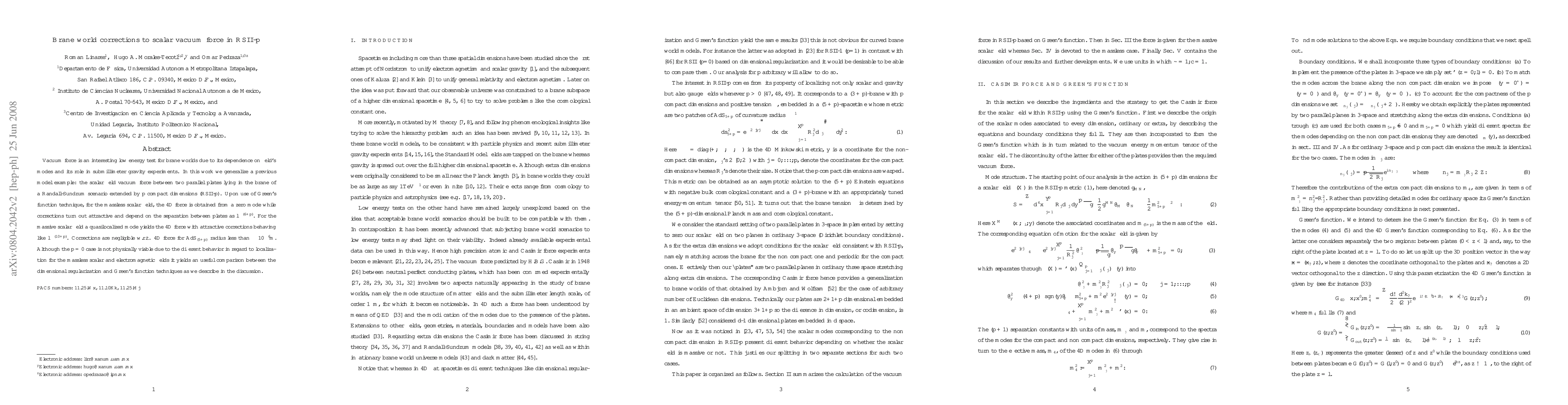 Vacuum force is an interesting low energy test for brane worlds due to its dependence on field's modes and its role in submillimeter gravity experiments. In this work we generalize a previous model example: the scalar field vacuum force between two parallel plates lying in the brane of a Randall-Sundrum scenario extended by $p$ compact dimensions (RSII-$p$). Upon use of Green's function technique, for the massless scalar field, the 4D force is obtained from a zero mode while corrections turn out attractive and depend on the separation between plates as $l^{-(6+p)}$. For the massive scalar field a quasilocalized mode yields the 4D force with attractive corrections behaving like $l^{-(10+p)}$. Corrections are negligible w.r.t. 4D force for $AdS_{(5+p)}$ radius less than $\sim 10^{-6}$m. Although the $p=0$ case is not physically viable due to the different behavior in regard to localization for the massless scalar and electromagnetic fields it yields an useful comparison between the dimensional regularization and Green's function techniques as we describe in the discussion.