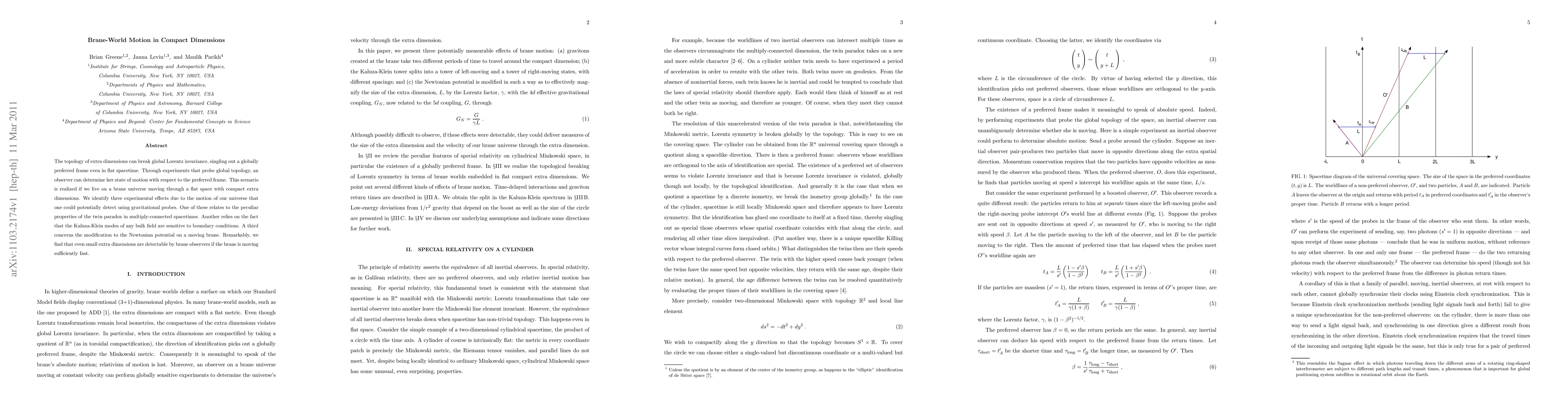 The topology of extra dimensions can break global Lorentz invariance,singling out a globally preferred frame even in flat spacetime. Through experiments that probe global topology, an observer can determine her state of motion with respect to the preferred frame. This scenario is realized if we live on a brane universe moving through a flat space with compact extra dimensions. We identify three experimental effects due to the motion of our universe that one could potentially detect using gravitational probes. One of these relates to the peculiar properties of the twin paradox in multiply-connected spacetimes. Another relies on the fact that the Kaluza-Klein modes of any bulk field are sensitive to boundary conditions. A third concerns the modification to the Newtonian potential on a moving brane. Remarkably, we find that even small extra dimensions are detectable by brane observers if the brane is moving sufficiently fast.