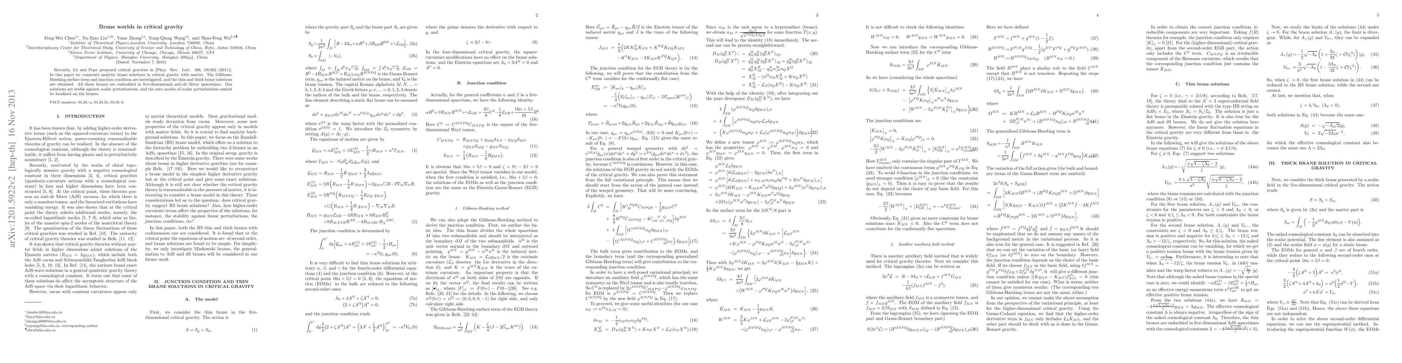 The paper presents a detailed analysis of brane solutions in critical gravity, including junction conditions and perturbation stability, contributing to the understanding of higher-derivative gravity theories.