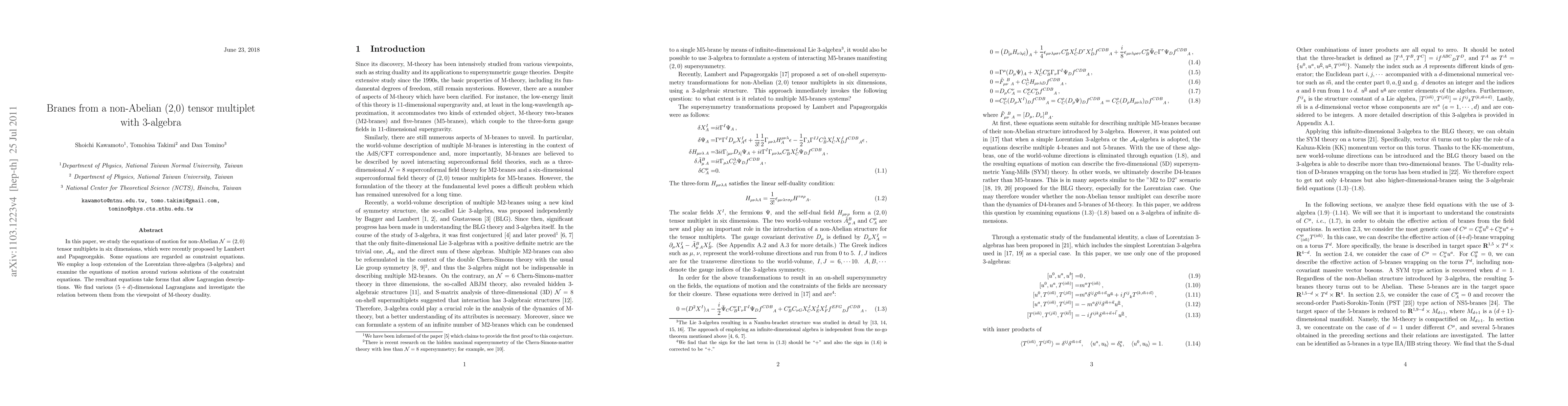 In this paper, we study the equations of motion for non-Abelian N=(2,0) tensor multiplets in six dimensions, which were recently proposed by Lambert and Papageorgakis. Some equations are regarded as constraint equations. We employ a loop extension of the Lorentzian three-algebra (3-algebra) and examine the equations of motion around various solutions of the constraint equations. The resultant equations take forms that allow Lagrangian descriptions. We find various (5+d)-dimensional Lagrangians and investigate the relation between them from the viewpoint of M-theory duality.