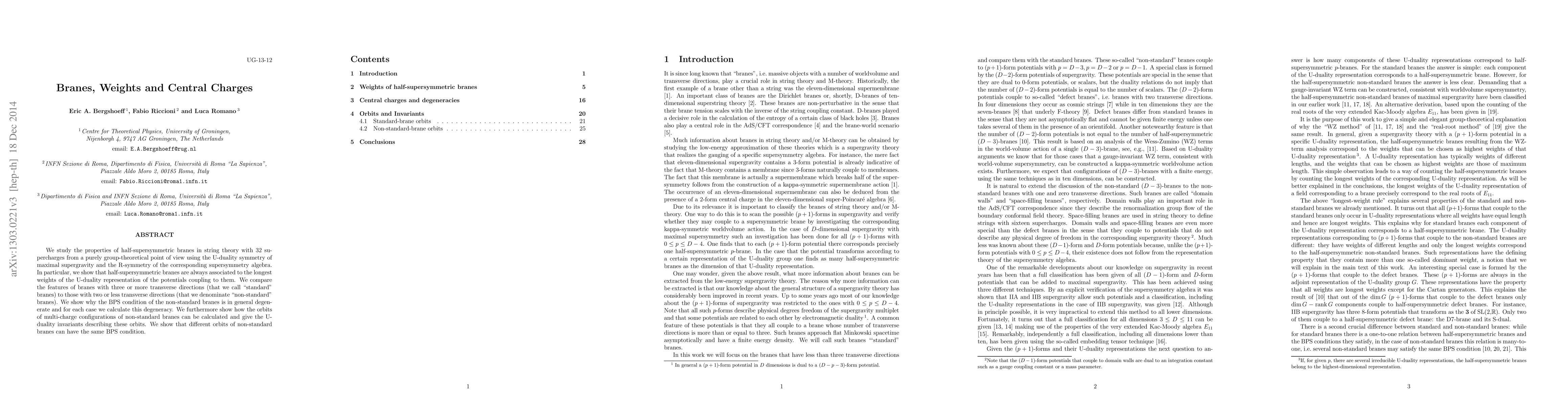 We study the properties of half-supersymmetric branes in string theory with 32 supercharges from a purely group-theoretical point of view using the U-duality symmetry of maximal supergravity and the R-symmetry of the corresponding supersymmetry algebra. In particular, we show that half-supersymmetric branes are always associated to the longest weights of the U-duality representation of the potentials coupling to them. We compare the features of branes with three or more transverse directions (that we call "standard" branes) to those with two or less transverse directions (that we denominate "non-standard" branes). We show why the BPS condition of the non-standard branes is in general degenerate and for each case we calculate this degeneracy. We furthermore show how the orbits of multi-charge configurations of non-standard branes can be calculated and give the U-duality invariants describing these orbits. We show that different orbits of non-standard branes can have the same BPS condition.