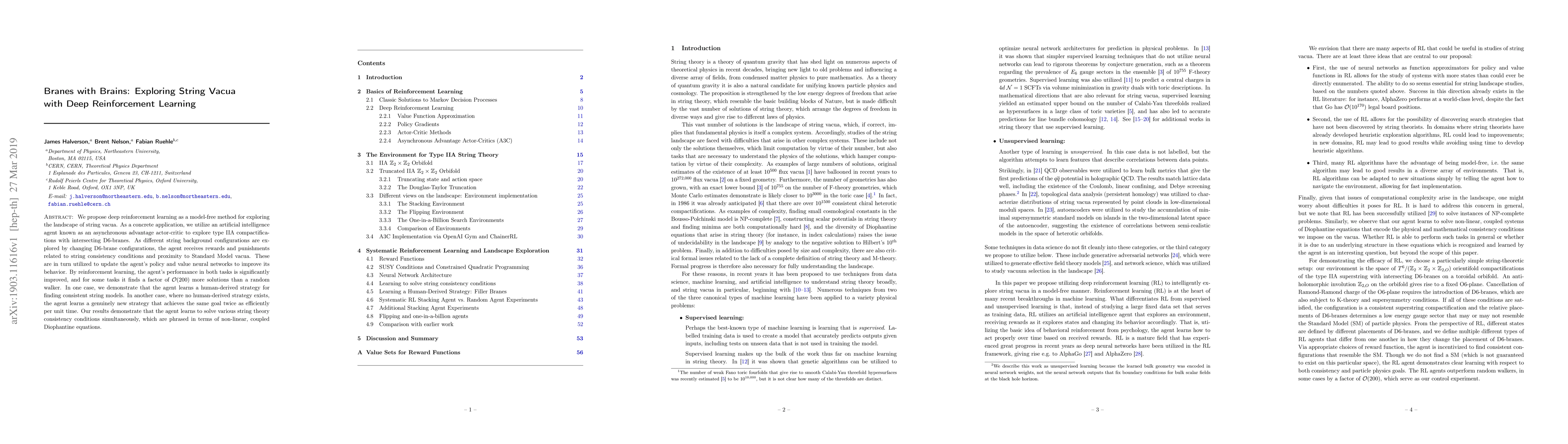 This paper employs deep reinforcement learning to explore the complex landscape of string vacua, specifically type IIA compactifications with intersecting D6-branes. The AI agent discovers solutions more efficiently than random search, sometimes learning human-derived strategies and other times developing novel strategies to meet string consistency conditions.