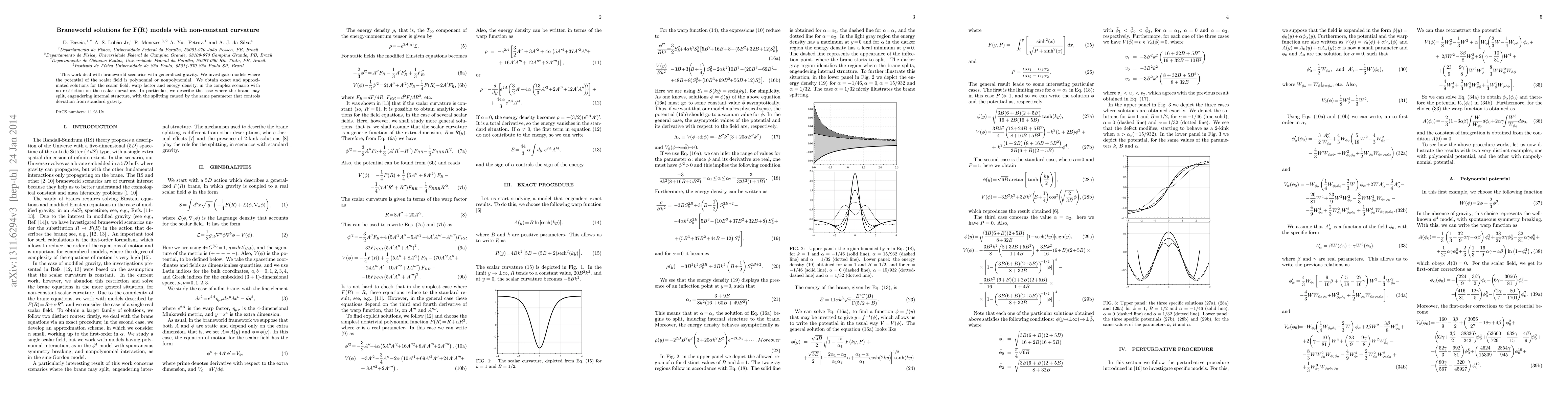 This work deal with braneworld scenarios with generalized gravity. We investigate models where the potential of the scalar field is polynomial or nonpolynomial. We obtain exact and approximated solutions for the scalar field, warp factor and energy density, in the complex scenario with no restriction on the scalar curvature. In particular, we describe the case where the brane may split, engendering internal structure, with the splitting caused by the same parameter that controls deviation from standard gravity.