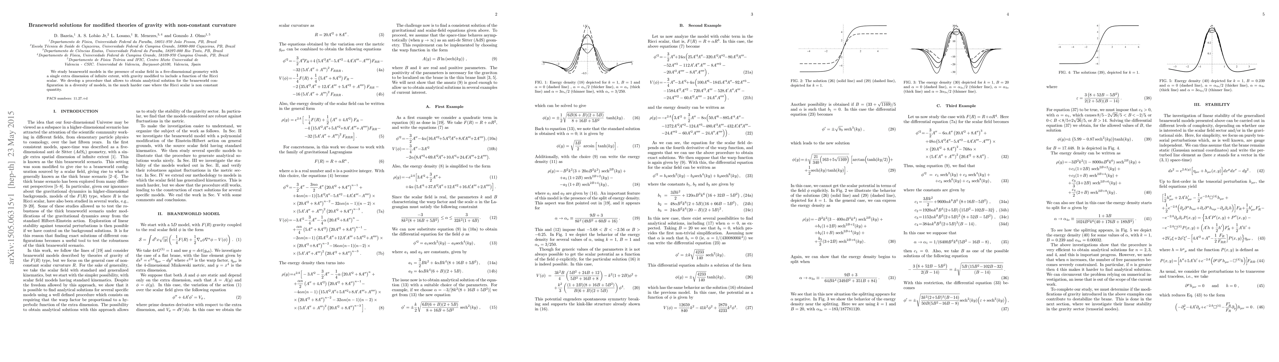 We study braneworld models in the presence of scalar field in a five-dimensional geometry with a single extra dimension of infinite extent, with gravity modified to include a function of the Ricci scalar. We develop a procedure that allows to obtain analytical solution for the braneworld configuration in a diversity of models, in the much harder case where the Ricci scalar is non constant quantity.