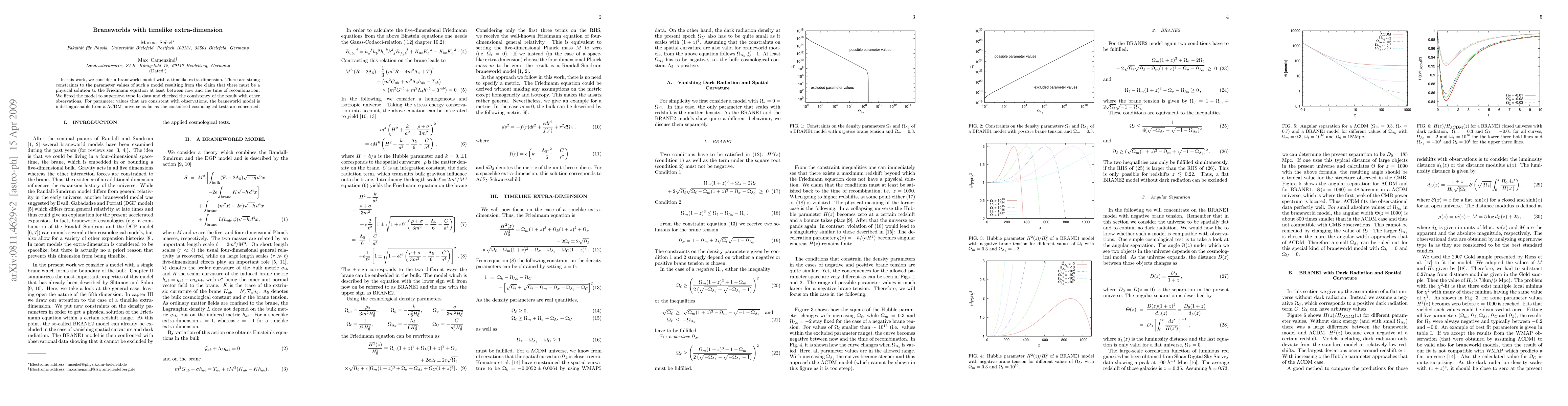 This paper explores a braneworld model featuring a timelike extra dimension, constrained by the requirement for a physical Friedmann solution from the present to recombination. The model's consistency with supernova type Ia data and other observations suggests it behaves similarly to a LambdaCDM universe for compatible parameter values.