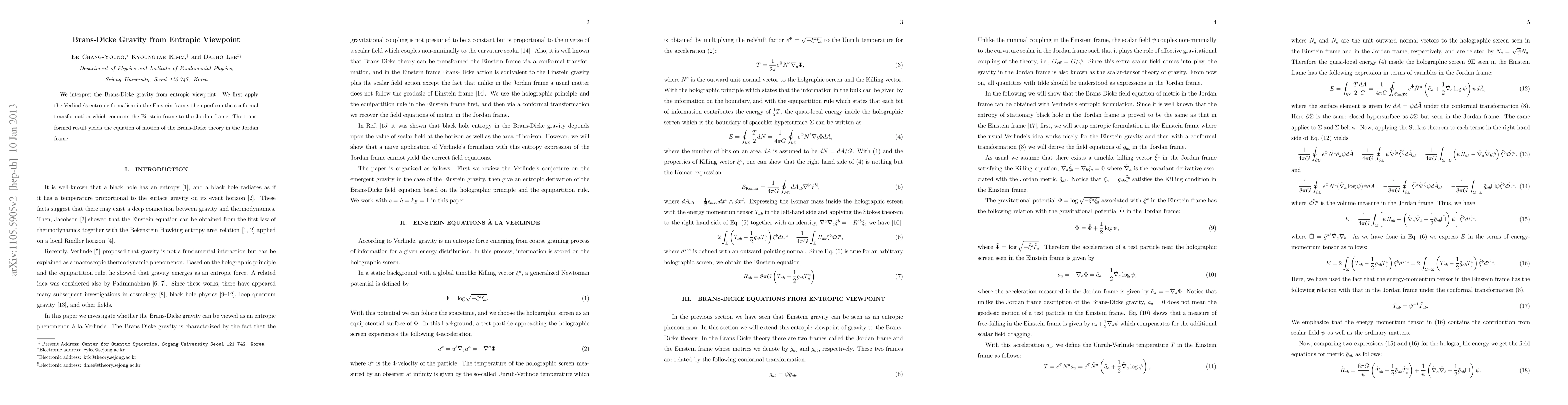 This paper interprets Brans-Dicke gravity using Verlinde's entropic formalism, applying it in the Einstein frame before performing a conformal transformation to derive the Brans-Dicke equations in the Jordan frame.
