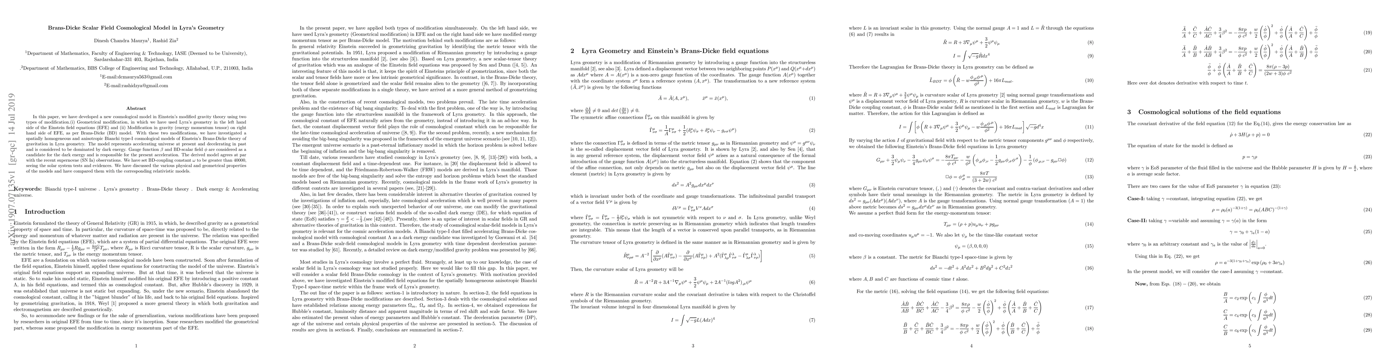 This paper develops a new cosmological model using Lyra's geometry and Brans-Dicke theory, showing an accelerating universe today and decelerating in the past, dominated by dark energy represented by $\beta$ and $\phi$. The model aligns with recent supernova observations and sets the BD-coupling constant $\omega$ to over 40,000.