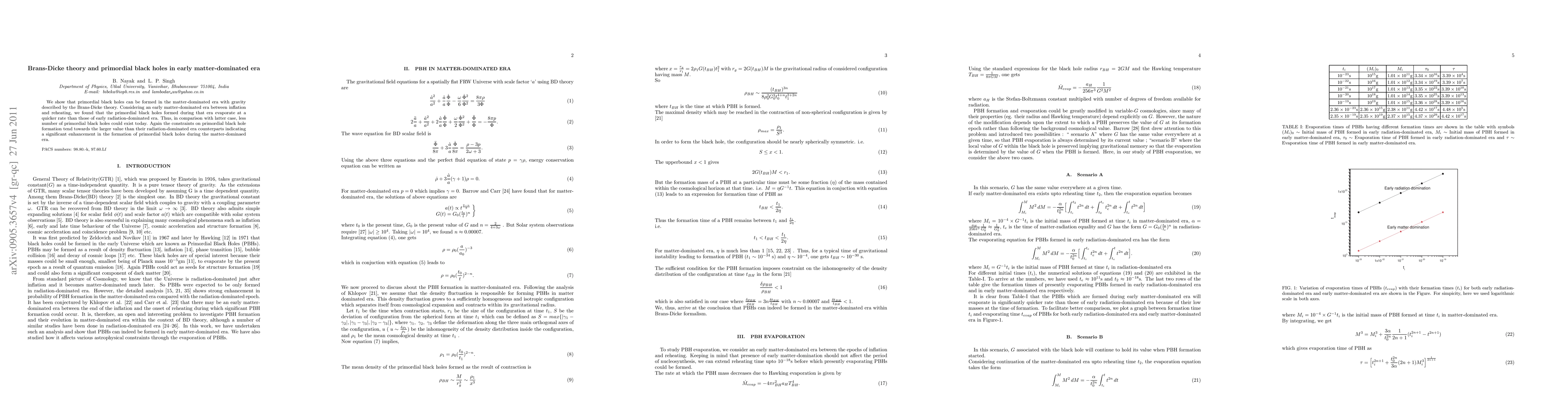 The paper presents detailed calculations of PBH formation and evaporation under Brans-Dicke theory in a matter-dominated era, comparing it with a radiation-dominated era.