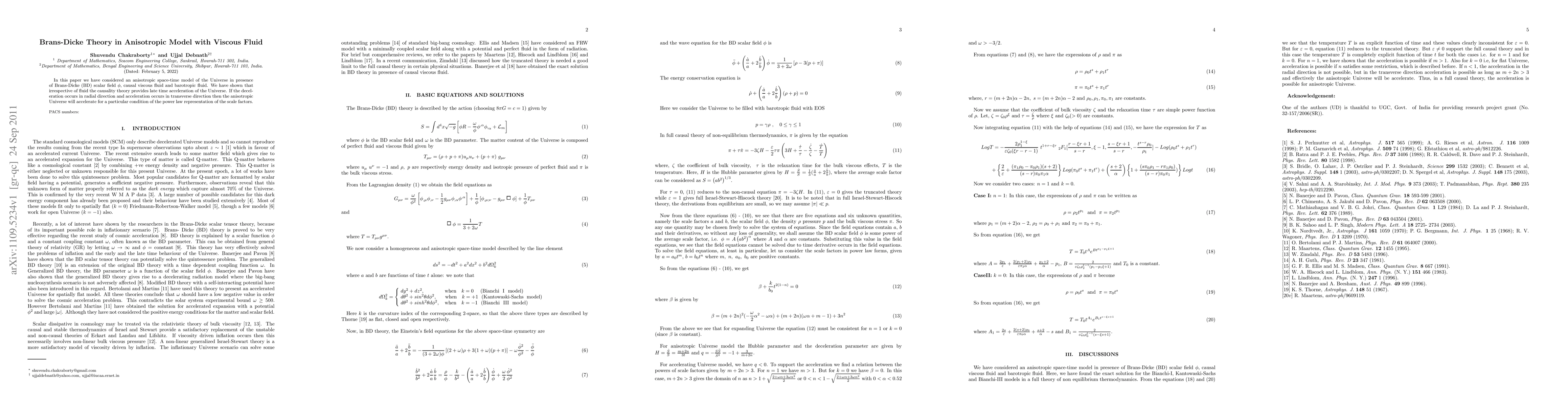 This paper explores an anisotropic cosmological model incorporating Brans-Dicke theory, causal viscous fluid, and barotropic fluid, demonstrating that causality theory leads to late-time acceleration of the Universe, particularly when radial deceleration and transverse acceleration conditions are met.