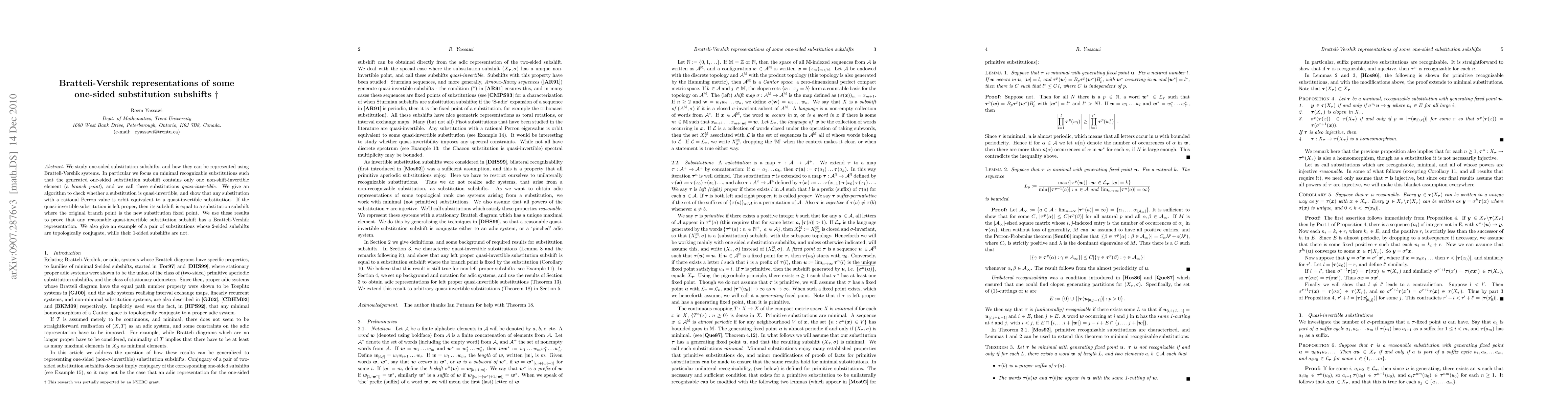 This paper explores how one-sided substitution subshifts can be represented using Bratteli-Vershik systems, focusing on minimal recognizable substitutions called quasi-invertible. It provides an algorithm to determine quasi-invertibility and demonstrates that any substitution with a rational Perron value is orbit equivalent to such a substitution.