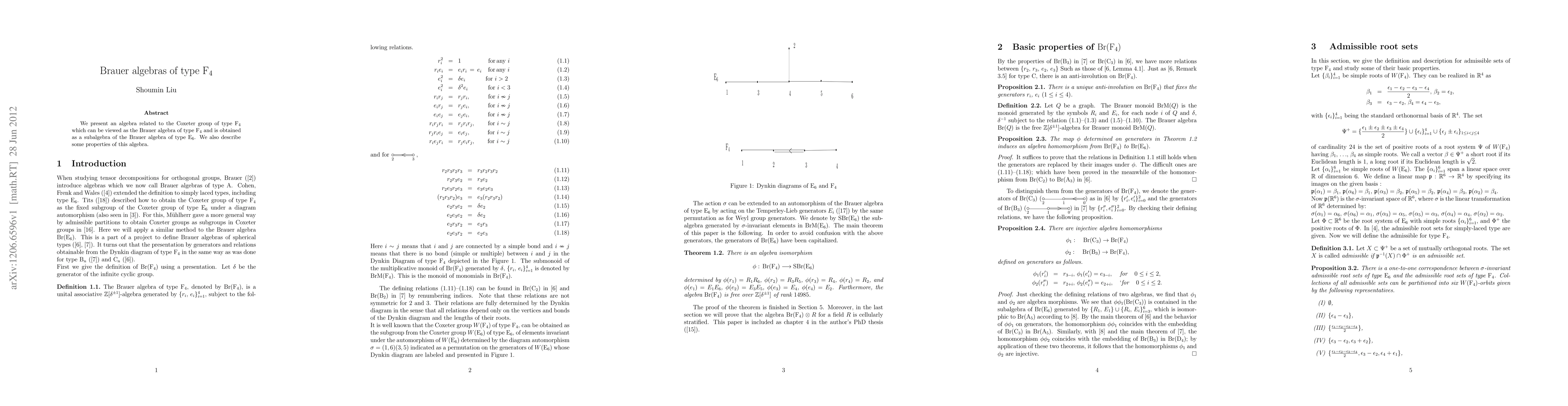 Summary: This paper introduces an algebra linked to the F4 Coxeter group, termed the Brauer algebra of type F4, derived from a subalgebra of the Brauer algebra of type E6, and discusses some of its properties.