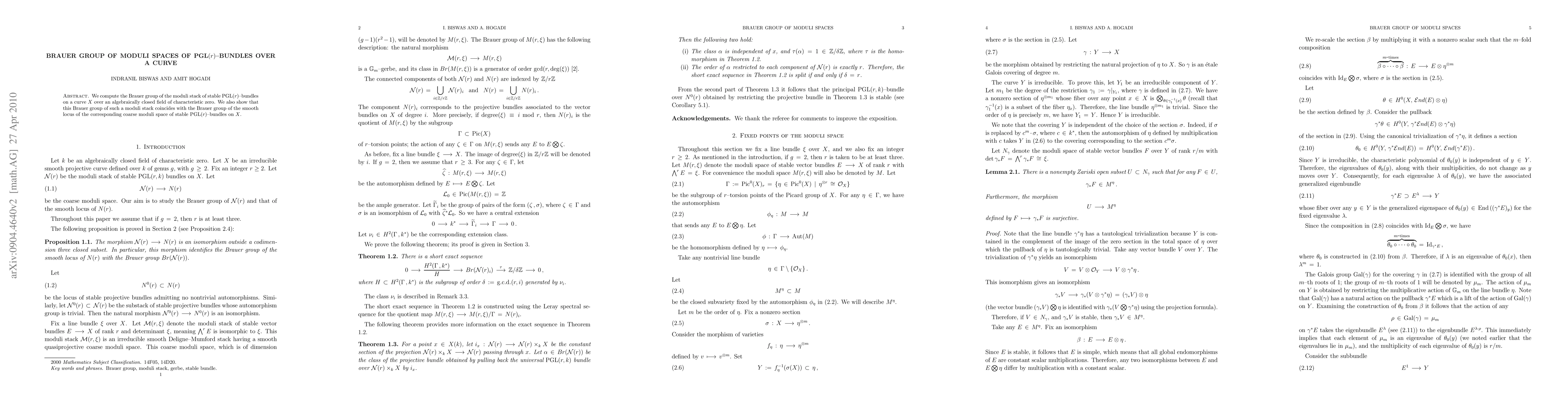 This paper computes the Brauer group of the moduli stack of stable PGL(r)-bundles on a curve over a characteristic zero field, and demonstrates that it matches the Brauer group of the smooth part of the coarse moduli space of such bundles.