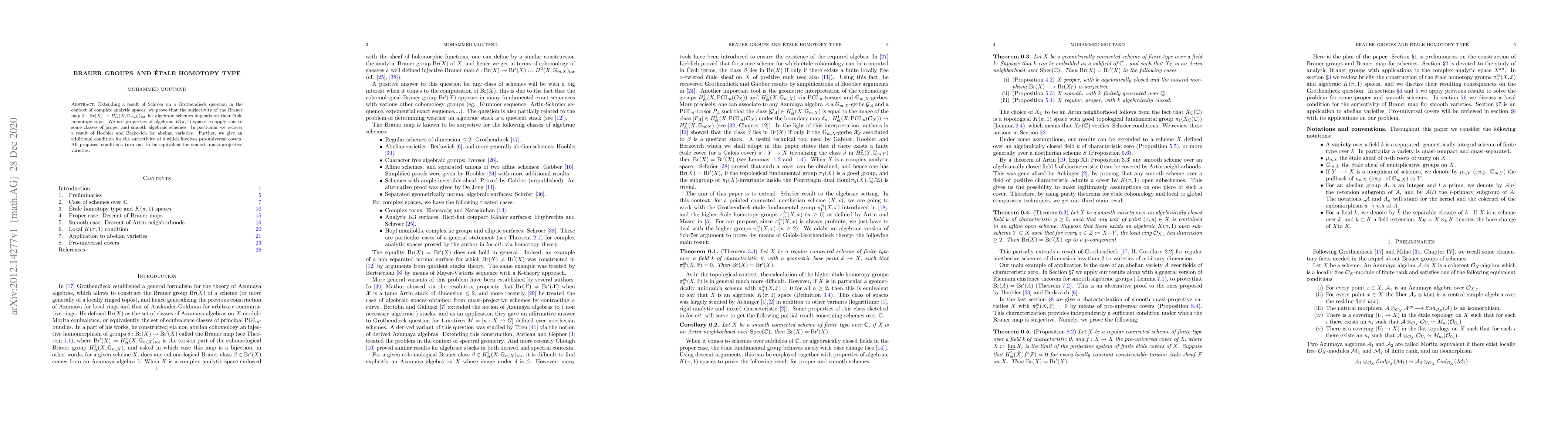 Extending a result of Schr\"oer on a Grothendieck question in the context of complex analytic spaces, we prove that the surjectivity of the Brauer map $\delta: Br(X) \rightarrow H_{\rm \'et}^2(X,\mathbb{G}_{m, X})_{\rm tor}$ for algebraic schemes depends on their \'etale homotopy type. We use properties of algebraic $K(\pi, 1)$ spaces to apply this to some classes of proper and smooth algebraic schemes. In particular we recover a result of Hoobler and Berkovich for abelian varieties. Further, we give an additional condition for the surjectivity of $\delta$ which involves pro-universal covers. All proposed conditions turn out to be equivalent for smooth quasi-projective varieties.