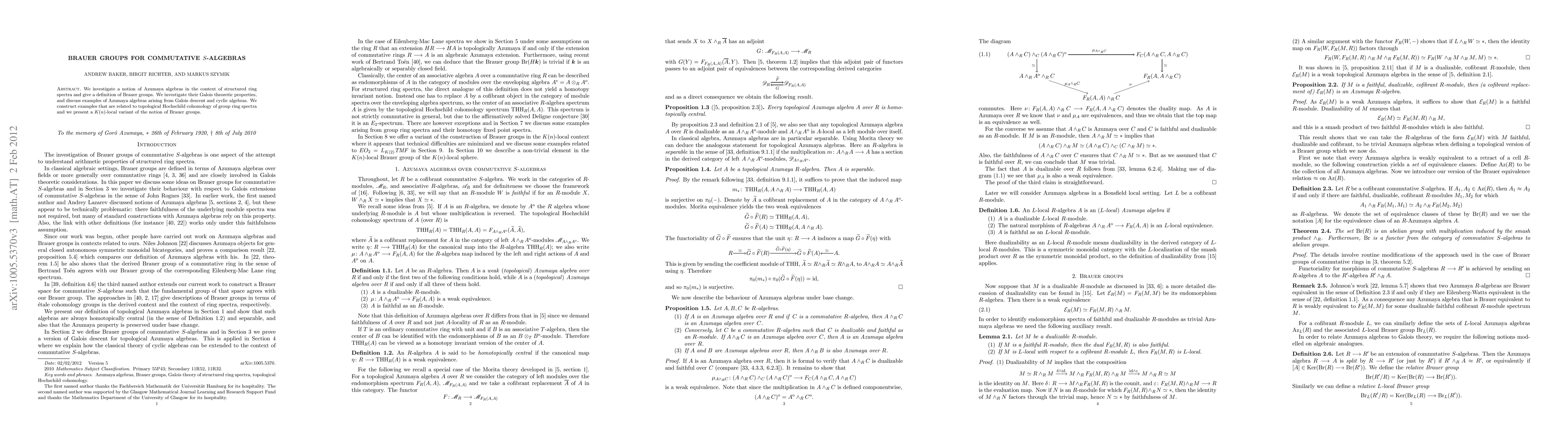 This paper defines Brauer groups for commutative $S$-algebras and explores their Galois theoretic properties, including examples from Galois descent and cyclic algebras, and constructs a K(n)-local variant. It also connects these groups to the topological Hochschild cohomology of group ring spectra.