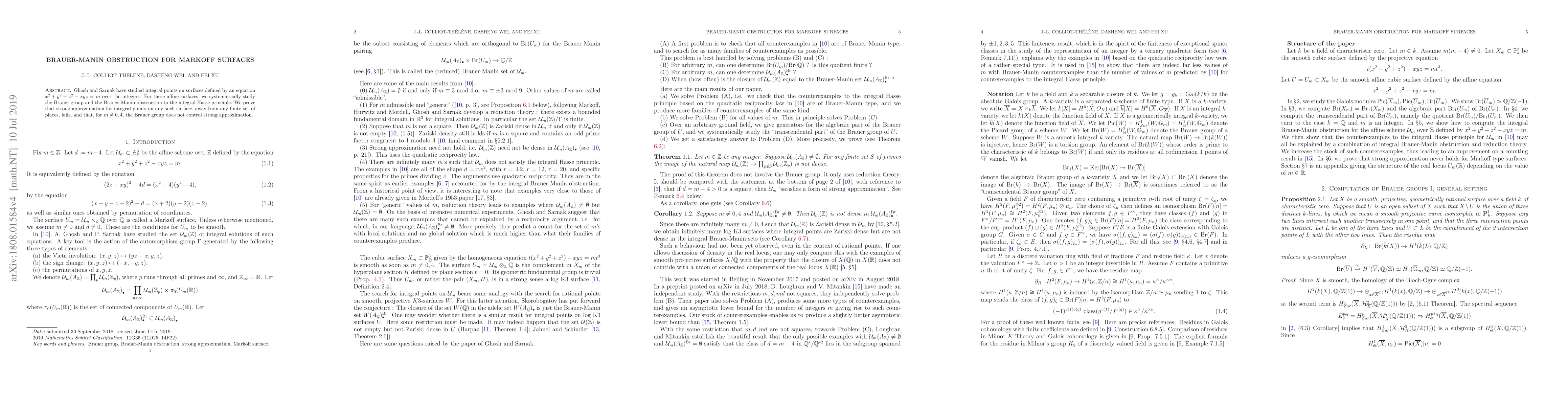 This paper investigates integral points on affine surfaces defined by the equation \(x^2 + y^2 + z^2 - xyz = m\) over the integers, focusing on the Brauer-Manin obstruction. It concludes that strong approximation for these surfaces fails and that the Brauer group does not control it when \(m \neq 0, 4\).