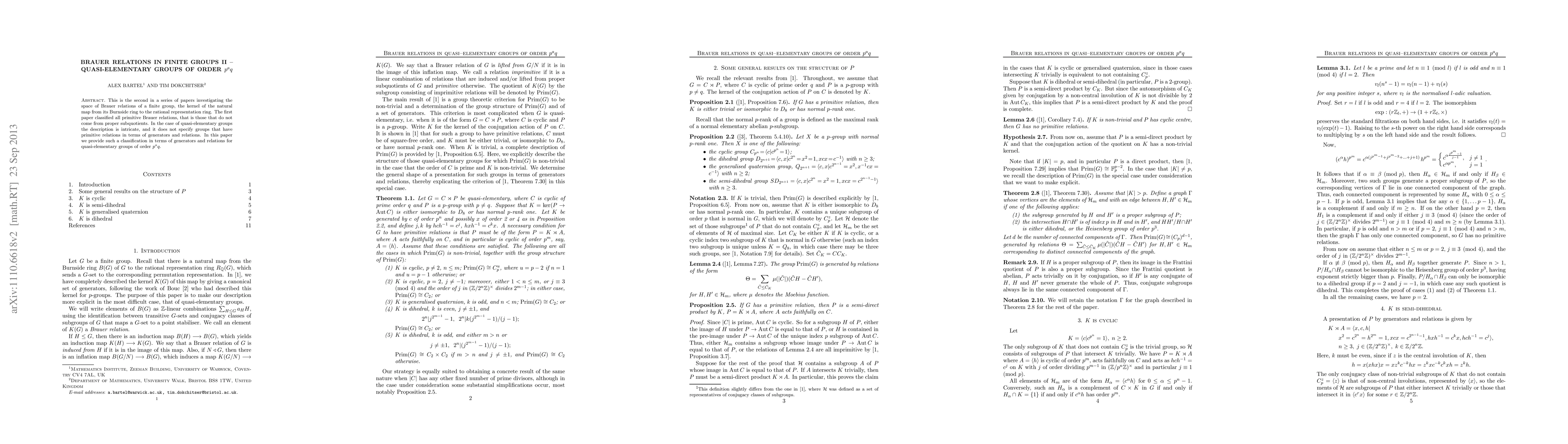 This is the second in a series of papers investigating the space of Brauer relations of a finite group, the kernel of the natural map from its Burnside ring to the rational representation ring. The first paper classified all primitive Brauer relations, that is those that do not come from proper subquotients. In the case of quasi-elementary groups the description is intricate, and it does not specify groups that have primitive relations in terms of generators and relations. In this paper we do this for quasi-elementary groups of order p^aq.