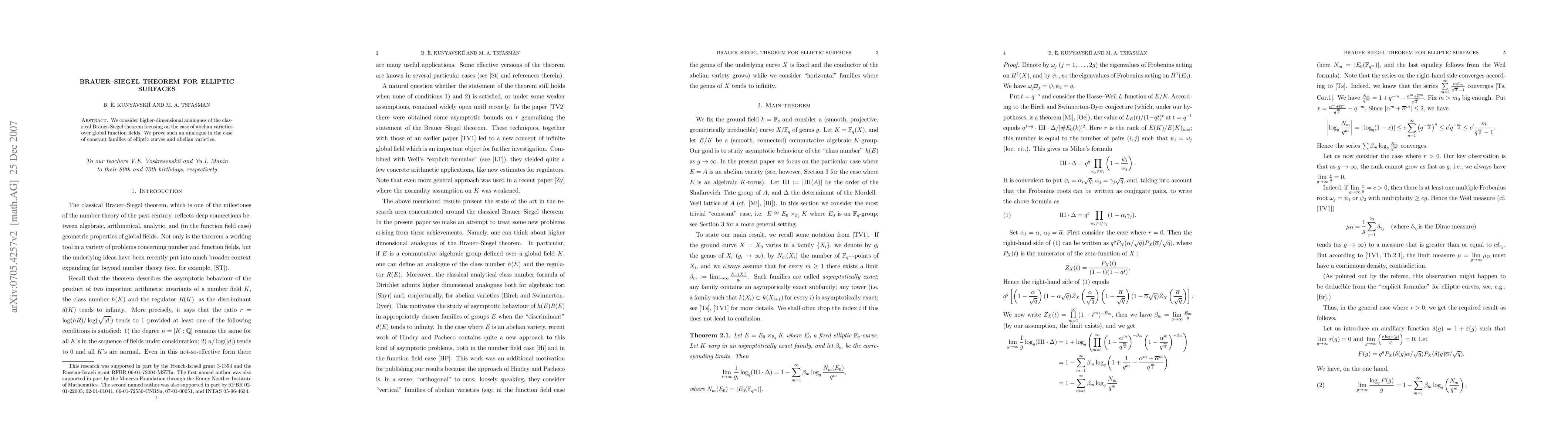 Summary: This paper proves an analogue of the Brauer-Siegel theorem for constant families of elliptic curves and abelian varieties over global function fields, extending the classical theorem to higher-dimensional settings.