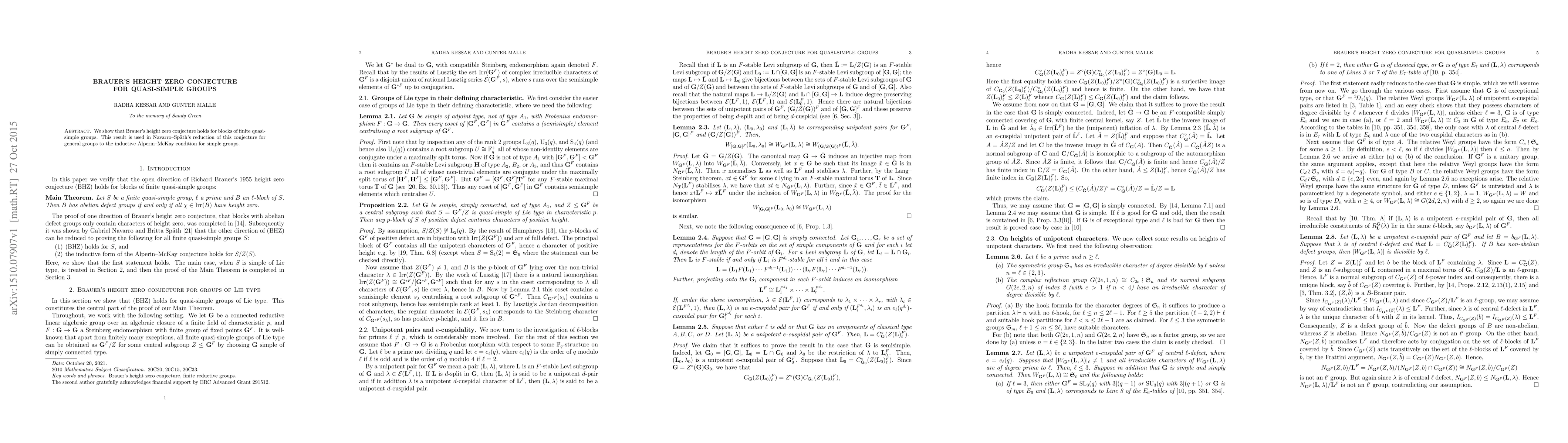 Summary: The paper confirms Brauer's height zero conjecture for blocks of finite quasi-simple groups, which aids in the broader reduction of the conjecture to the Alperin-McKay condition for simple groups. This result is significant in advancing the understanding of block theory in finite group representations.
