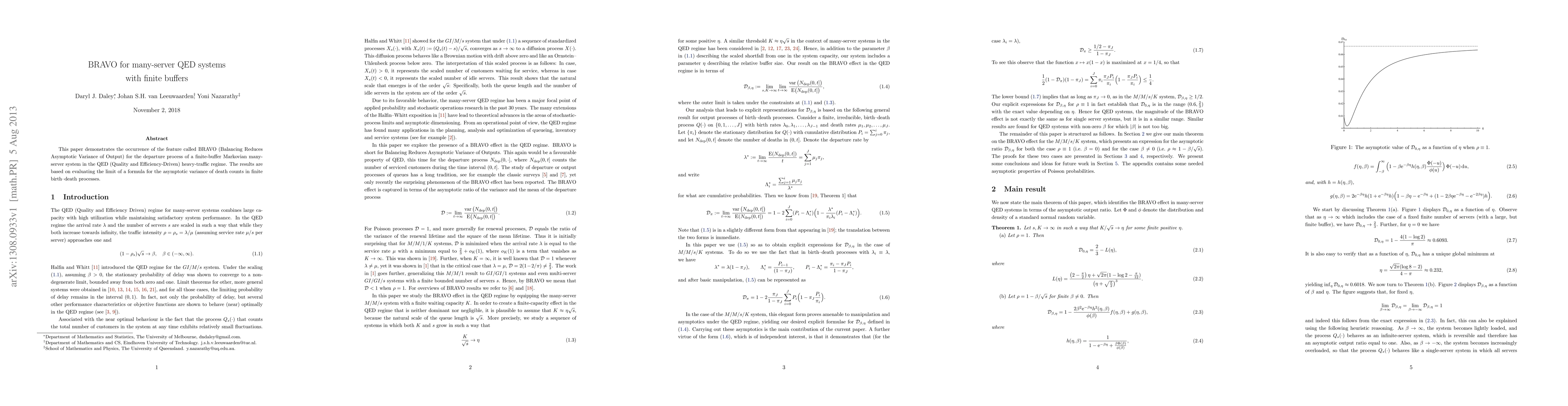 This paper demonstrates the occurrence of the feature called BRAVO (Balancing Reduces Asymptotic Variance of Output) for the departure process of a finite-buffer Markovian many-server system in the QED (Quality and Efficiency-Driven) heavy-traffic regime. The results are based on evaluating the limit of a formula for the asymptotic variance of death counts in finite birth--death processes.