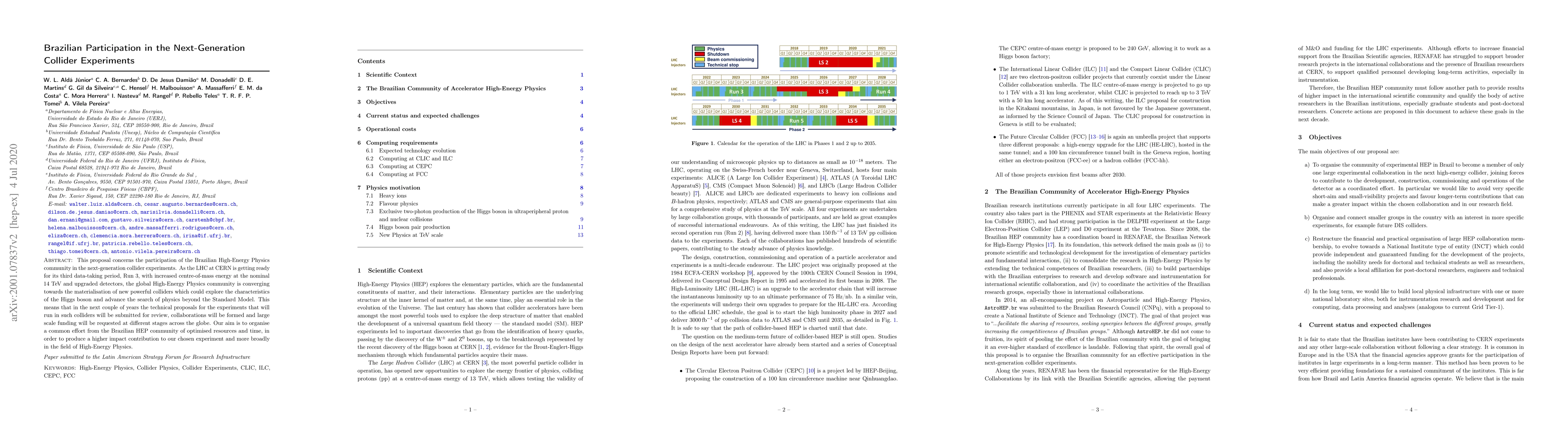 This proposal concerns the participation of the Brazilian High-Energy Physics community in the next-generation collider experiments. As the LHC at CERN is getting ready for its third data-taking period, Run 3, with increased centre-of-mass energy at the nominal 14 TeV and upgraded detectors, the global High-Energy Physics community is converging towards the materialisation of new powerful colliders which could explore the characteristics of the Higgs boson and advance the search of physics beyond the Standard Model. This means that in the next couple of years the technical proposals for the experiments that will run in such colliders will be submitted for review, collaborations will be formed and large scale funding will be requested at different stages across the globe. Our aim is to organise a common effort from the Brazilian HEP community of optimised resources and time, in order to produce a higher impact contribution to our chosen experiment and more broadly in the field of High-Energy Physics.