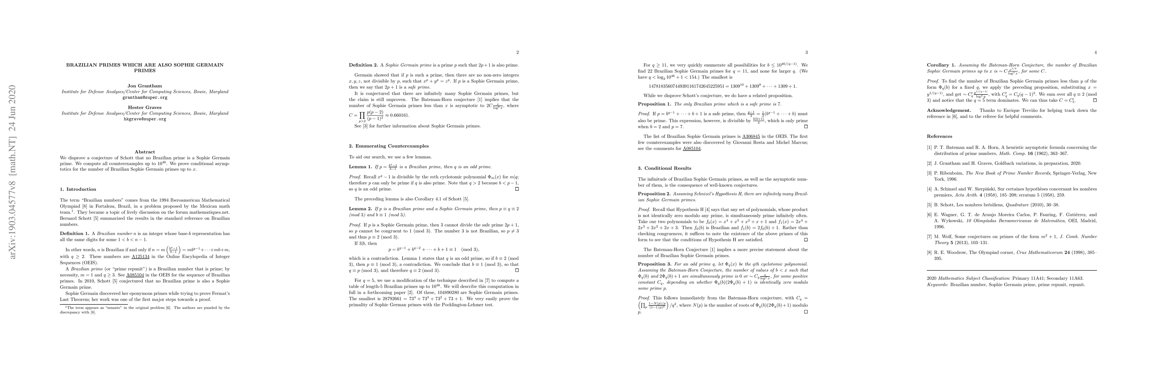 We disprove a conjecture of Schott that no Brazilian primes are Sophie Germain primes. We enumerate all counterexamples up to $10^{46}$.