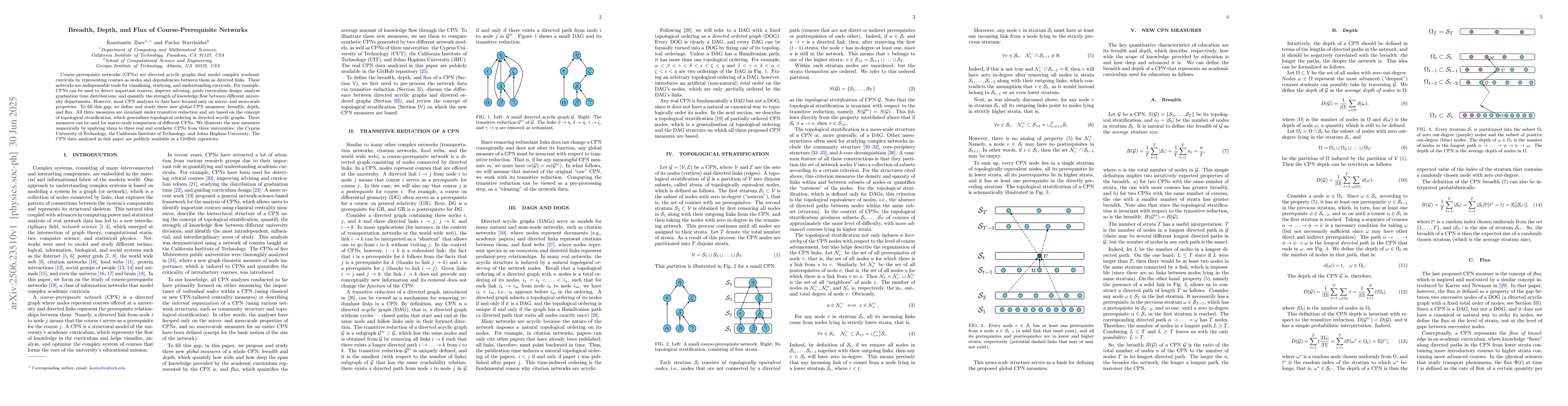 Course-prerequisite networks (CPNs) are directed acyclic graphs that model complex academic curricula by representing courses as nodes and dependencies between them as directed links. These networks are indispensable tools for visualizing, studying, and understanding curricula. For example, CPNs can be used to detect important courses, improve advising, guide curriculum design, analyze graduation time distributions, and quantify the strength of knowledge flow between different university departments. However, most CPN analyses to date have focused only on micro- and meso-scale properties. To fill this gap, we define and study three new global CPN measures: breadth, depth, and flux. All three measures are invariant under transitive reduction and are based on the concept of topological stratification, which generalizes topological ordering in directed acyclic graphs. These measures can be used for macro-scale comparison of different CPNs. We illustrate the new measures numerically by applying them to three real and synthetic CPNs from three universities: the Cyprus University of Technology, the California Institute of Technology, and Johns Hopkins University. The CPN data analyzed in this paper are publicly available in a GitHub repository.