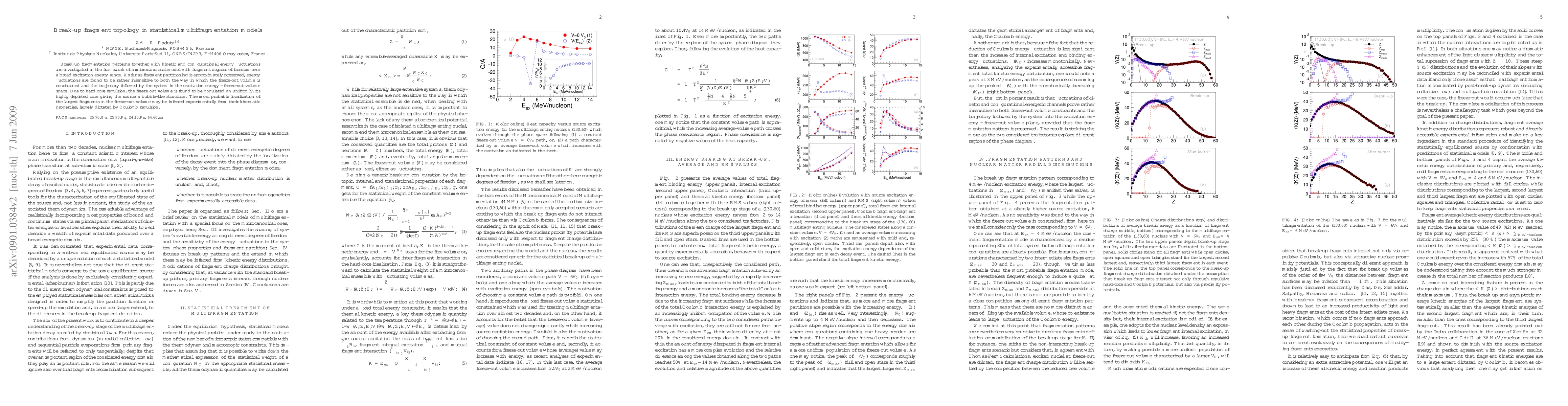 Break-up fragmentation patterns together with kinetic and configurational energy fluctuations are investigated in the framework of a microcanonical model with fragment degrees of freedom over a broad excitation energy range. As far as fragment partitioning is approximately preserved, energy fluctuations are found to be rather insensitive to both the way in which the freeze-out volume is constrained and the trajectory followed by the system in the excitation energy - freeze-out volume space. Due to hard-core repulsion, the freeze-out volume is found to be populated un-uniformly, its highly depleted core giving the source a bubble-like structure. The most probable localization of the largest fragments in the freeze-out volume may be inferred experimentally from their kinematic properties, largely dictated by Coulomb repulsion.