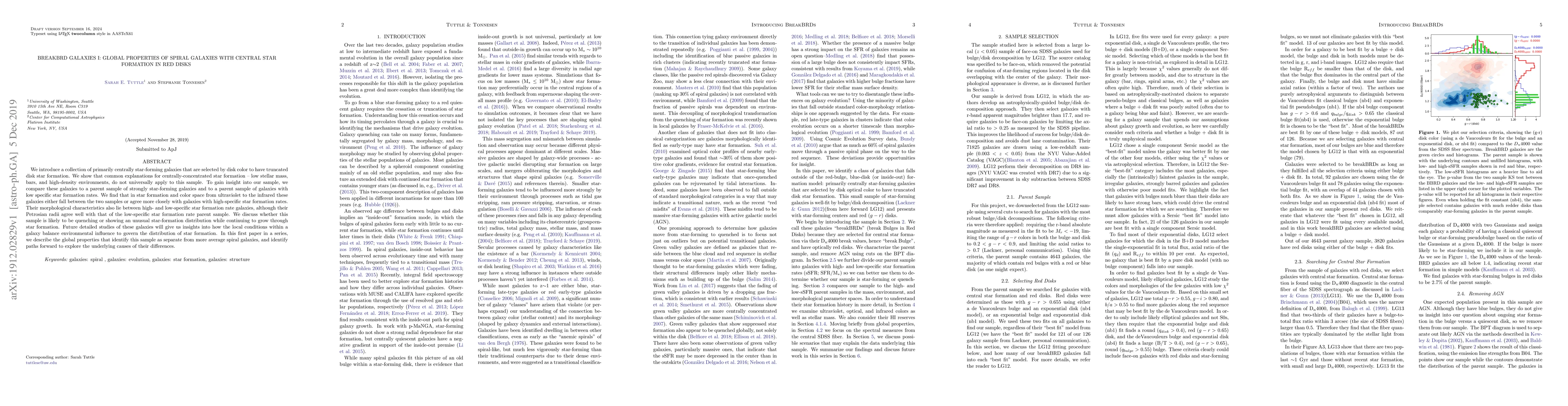 This paper introduces a unique collection of spiral galaxies characterized by central star formation in red disks, finding that traditional explanations for such star formation do not universally apply. The study compares these galaxies to other star-forming and low-specific star formation rate galaxies, revealing they occupy an intermediate space in star formation and color characteristics, suggesting ongoing investigation into their star formation dynamics and environmental influences.