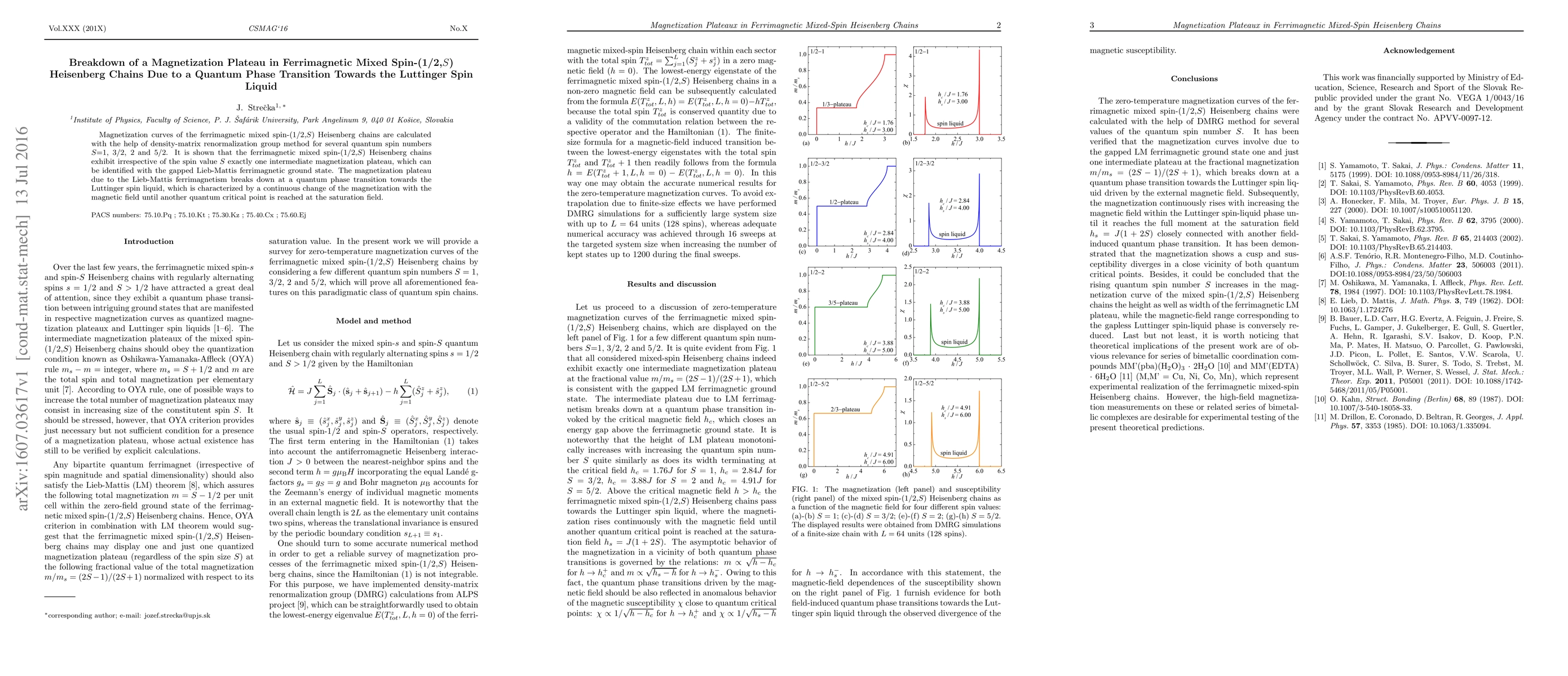 This paper investigates the magnetization plateaus in ferrimagnetic mixed spin-(1/2,S) Heisenberg chains using the density-matrix renormalization group method. It finds that these chains exhibit a single plateau linked to the Lieb-Mattis ferrimagnetic ground state, which breaks down at a quantum phase transition towards a Luttinger spin liquid.