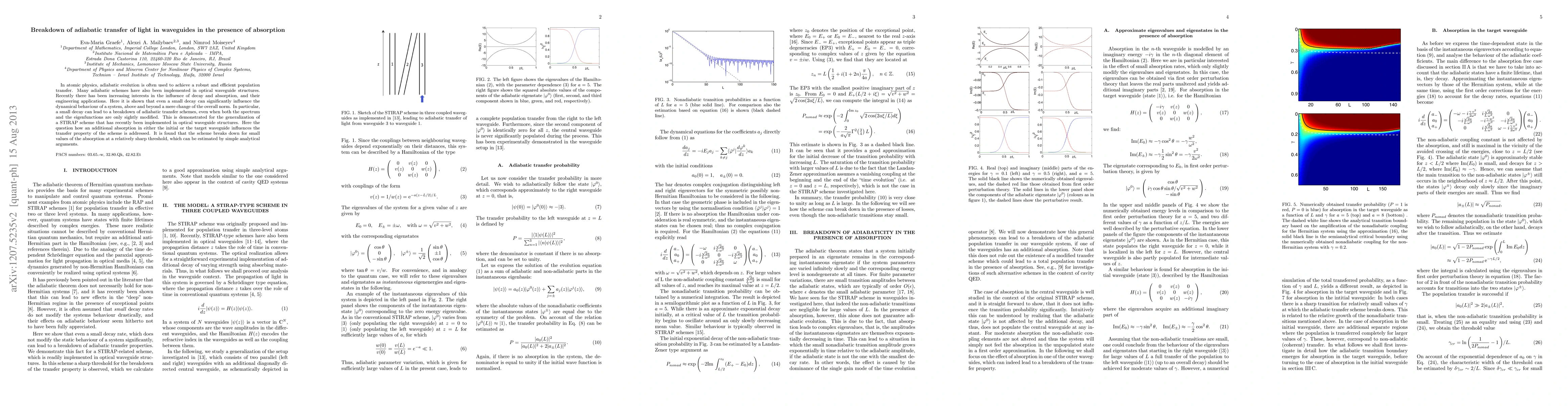 In atomic physics, adiabatic evolution is often used to achieve a robust and efficient population transfer. Many adiabatic schemes have also been implemented in optical waveguide structures. Recently there has been increasing interests in the influence of decay and absorption, and their engineering applications. Here it is shown that even a small decay can significantly influence the dynamical behaviour of a system, above and beyond a mere change of the overall norm. In particular, a small decay can lead to a breakdown of adiabatic transfer schemes, even when both the spectrum and the eigenfunctions are only sightly modified. This is demonstrated for the generalization of a STIRAP scheme that has recently been implemented in optical waveguide structures. Here the question how an additional absorption in either the initial or the target waveguide influences the transfer property of the scheme is addressed. It is found that the scheme breaks down for small values of the absorption at a relatively sharp threshold, which can be estimated by simple analytical arguments.