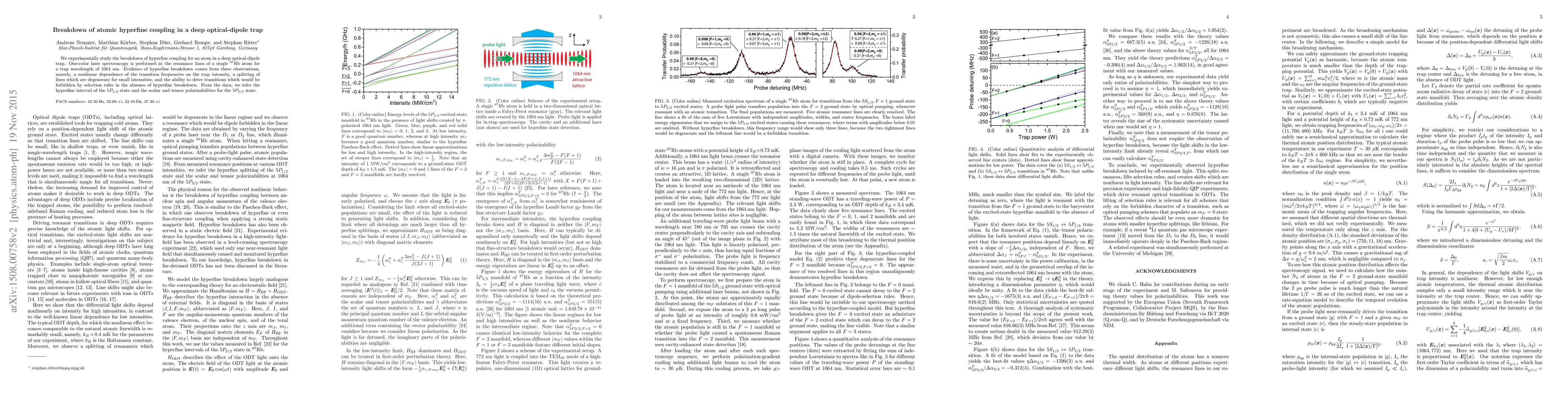 Researchers studied hyperfine coupling in an atom trapped with a deep optical-dipole trap, observing key effects including nonlinear transition frequencies and forbidden transitions driven due to hyperfine breakdown.