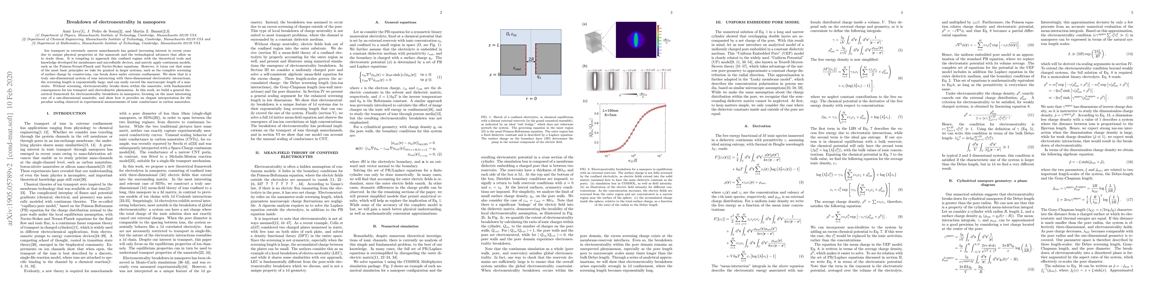 This paper investigates the breakdown of electroneutrality in nanopores, demonstrating that in one-dimensional systems, the screening length exceeds the length of nanotubes, leading to deviations from expected ionic transport behavior and providing an explanation for unusual ionic conductance scaling in carbon nanotubes.