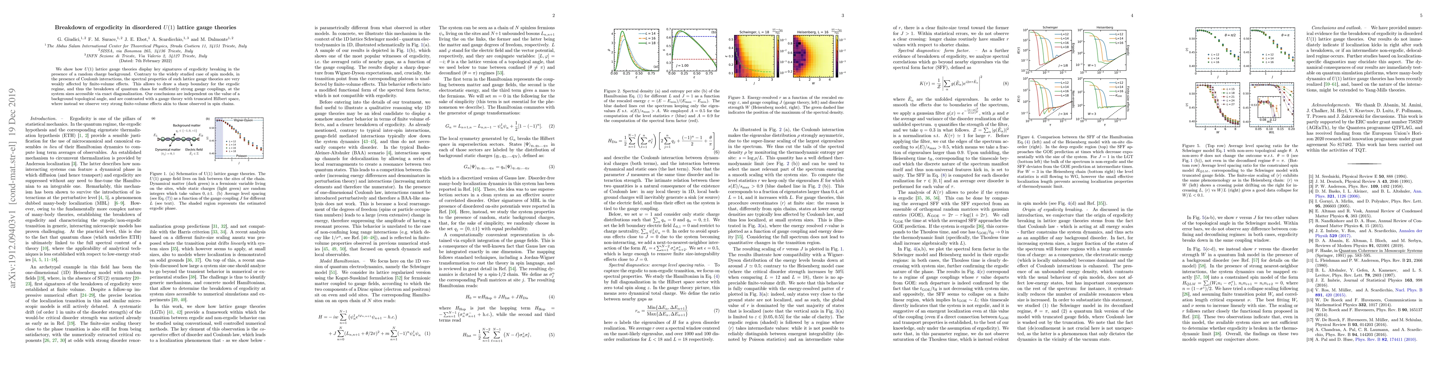 The paper introduces a novel approach to identify ergodicity breaking in disordered U(1) lattice gauge theories, highlighting the contrasting behavior with a truncated Hilbert space model.