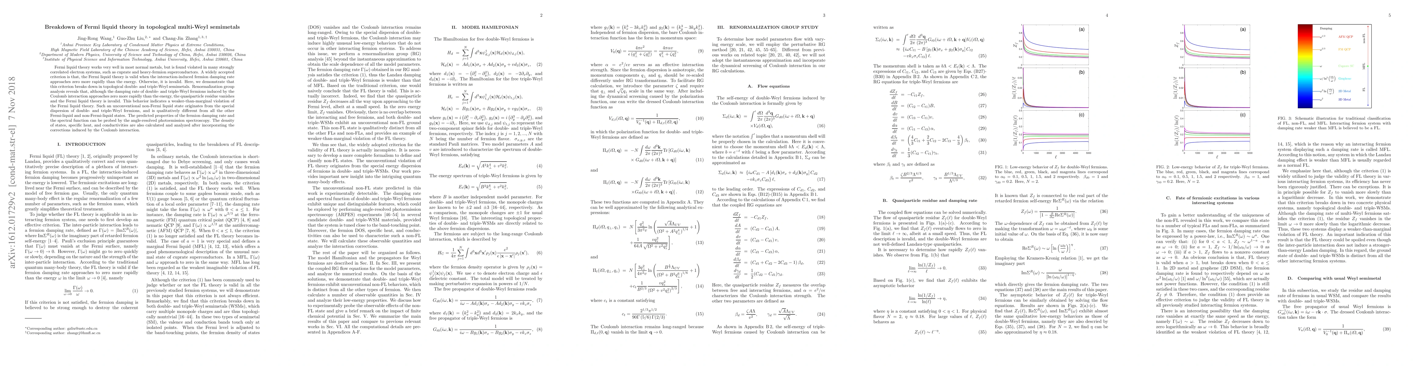This paper demonstrates that Fermi liquid theory, which typically applies to normal metals, breaks down in topological multi-Weyl semimetals due to the vanishing quasiparticle residue, despite the damping rate approaching zero faster than the energy. This unconventional non-Fermi liquid state is attributed to the unique dispersion of double- and triple-Weyl fermions.
