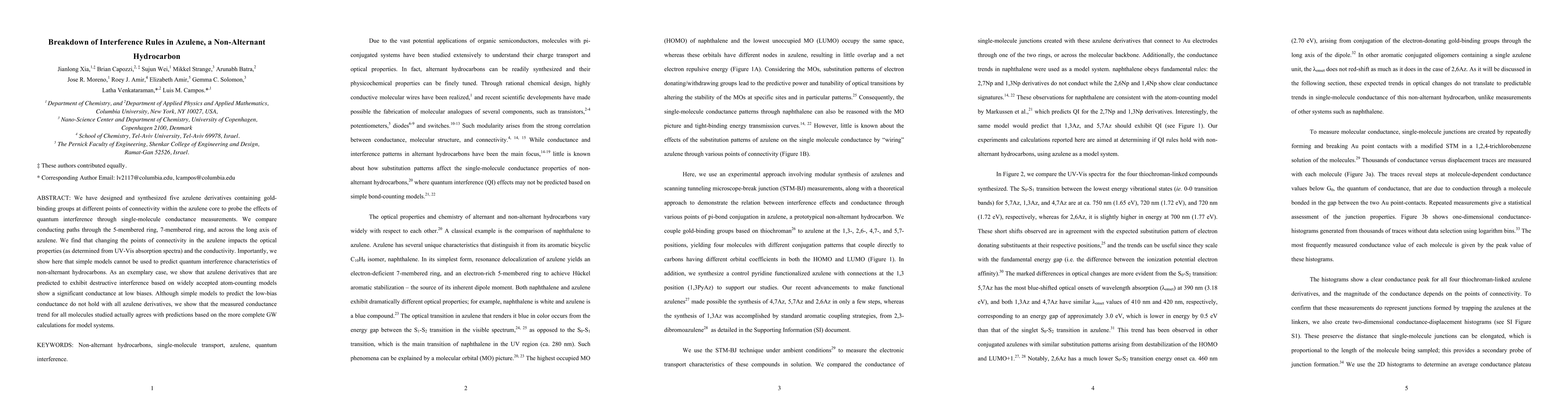 This study investigates the effects of quantum interference in azulene derivatives by synthesizing five compounds with gold-binding groups at different positions. The results reveal that connectivity changes impact both optical properties and conductivity, challenging simple interference prediction models and showing that more complex GW calculations provide better predictions.